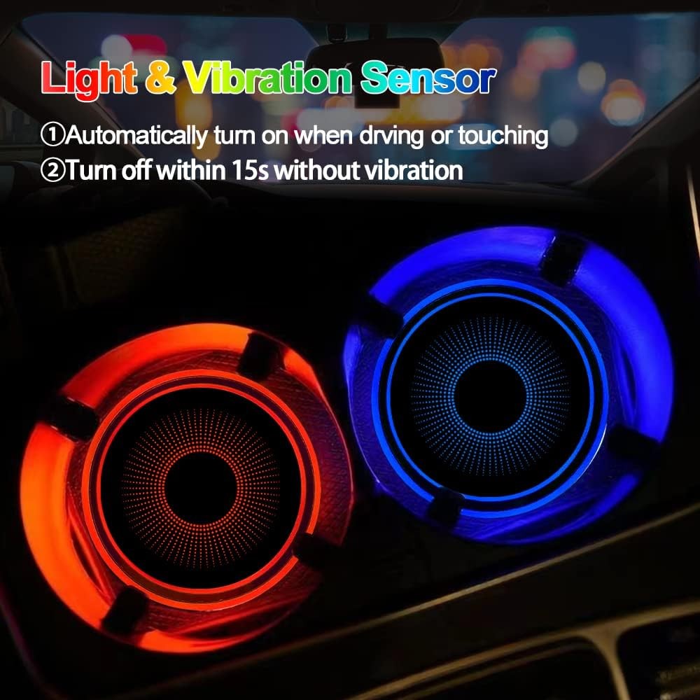 2PCS LED Cup Holder Lights for Car, Rechargeable 7 Color-Changing Light Up Cup H