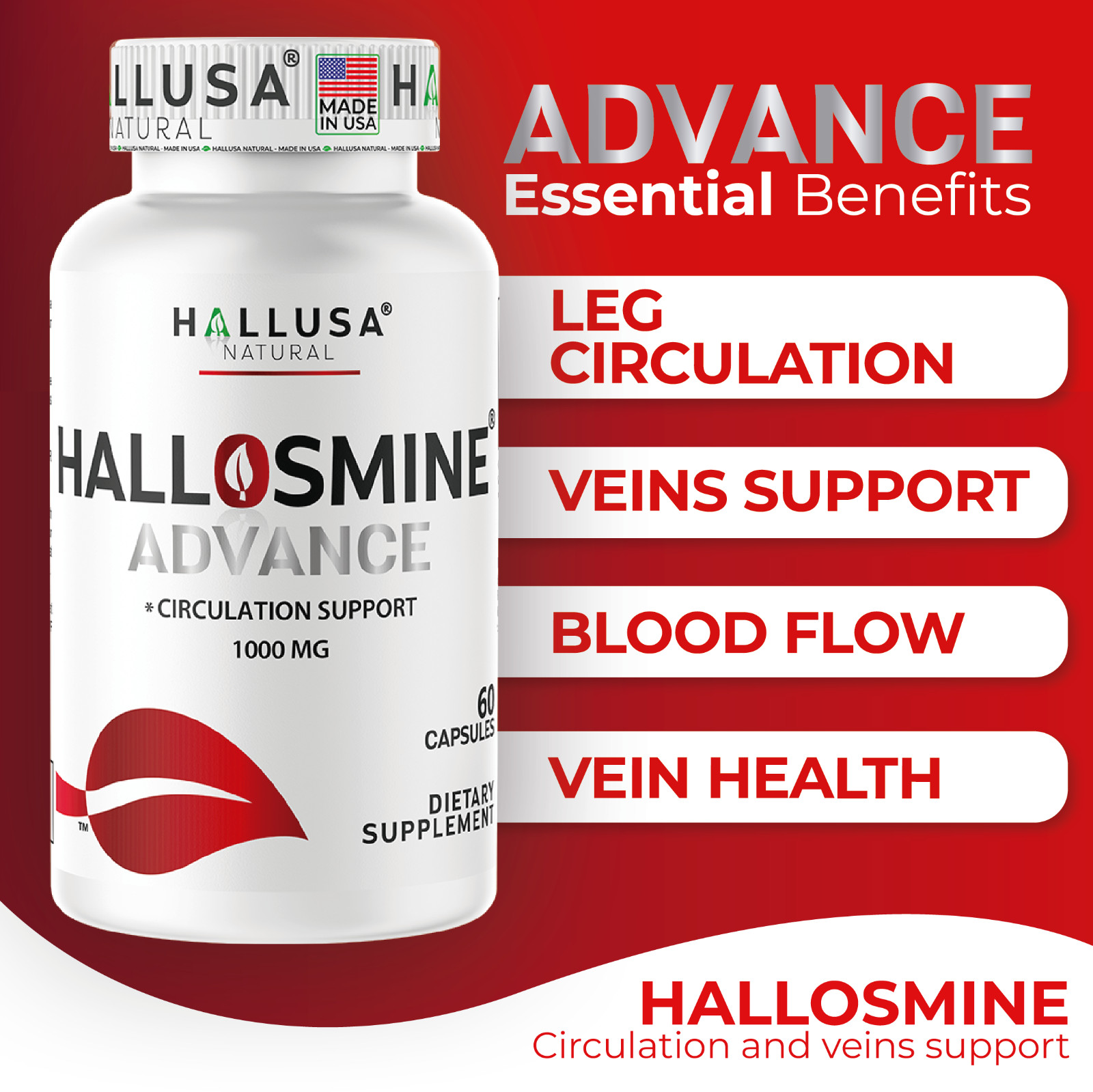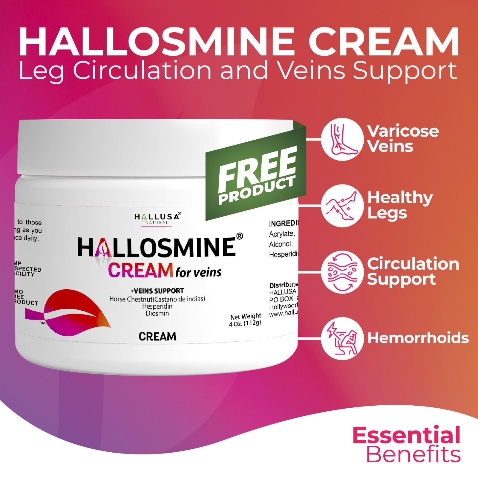 Hallusa Natural Hallosmine Advance 1000mg Diosmin 120 ct FREE Leg Cream 4 oz