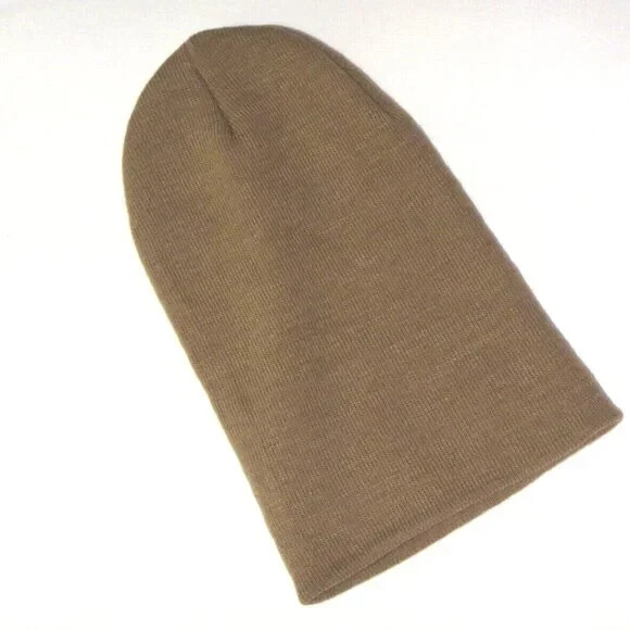 12 Unisex Khaki Brown Long Classic Warm Knitted Acrylic Winter Beanie