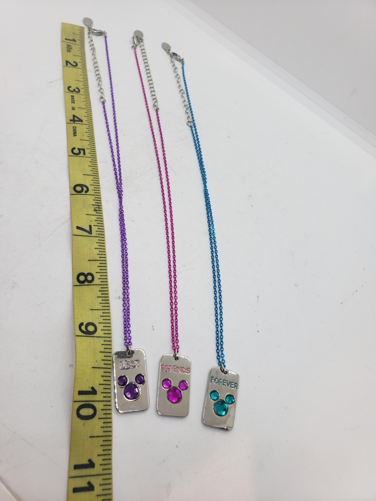 Disney 3 Best Friends Forever Necklace Set 3 pc Mickey Mouse Crystal Disneyland