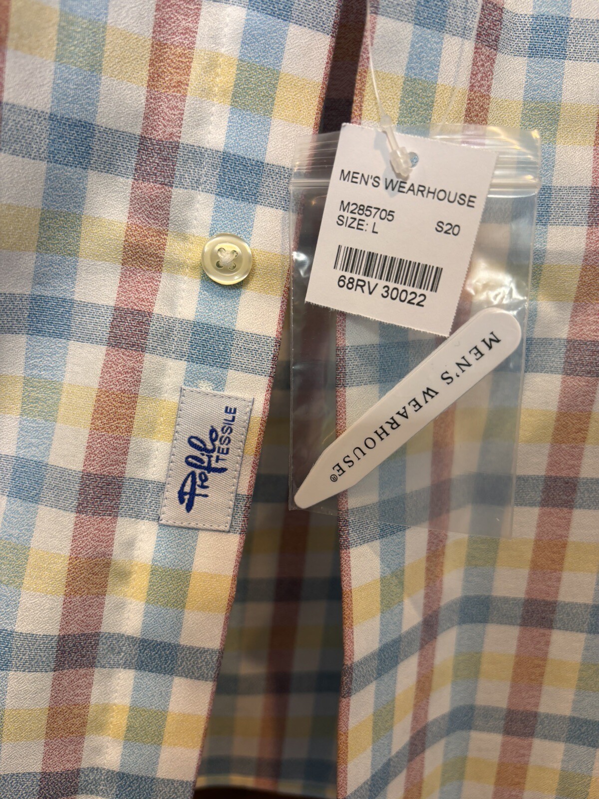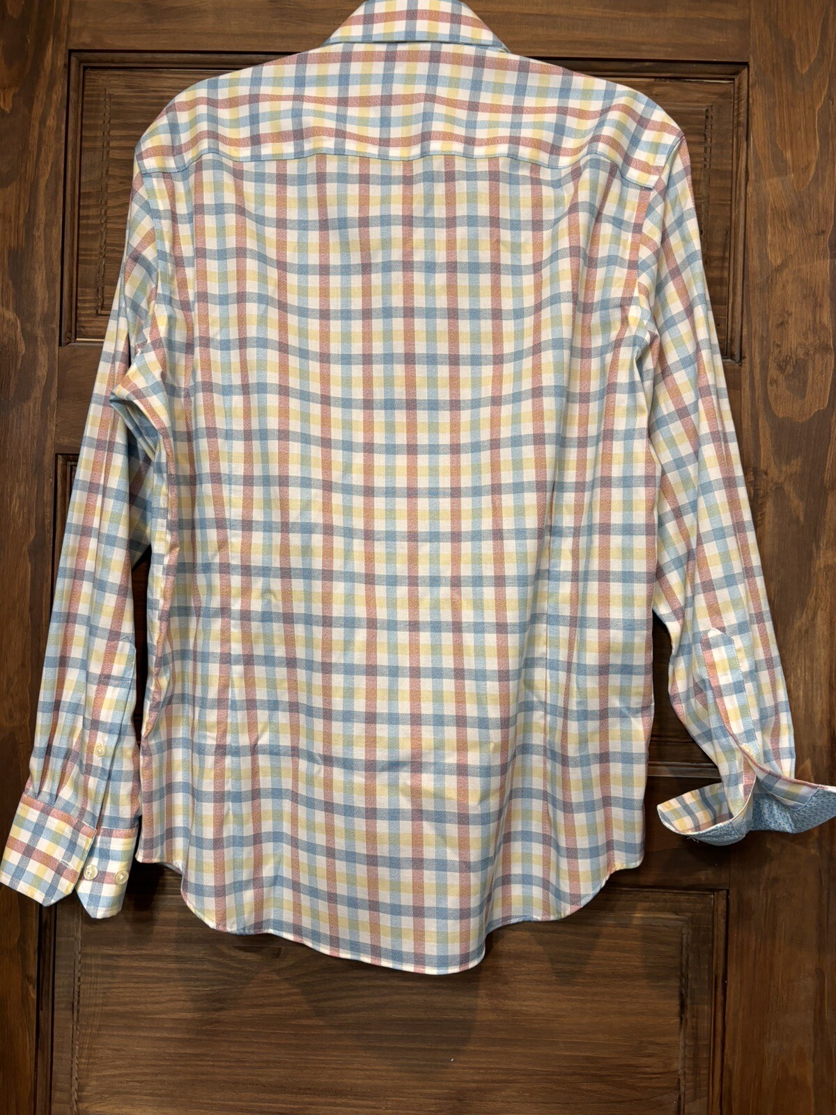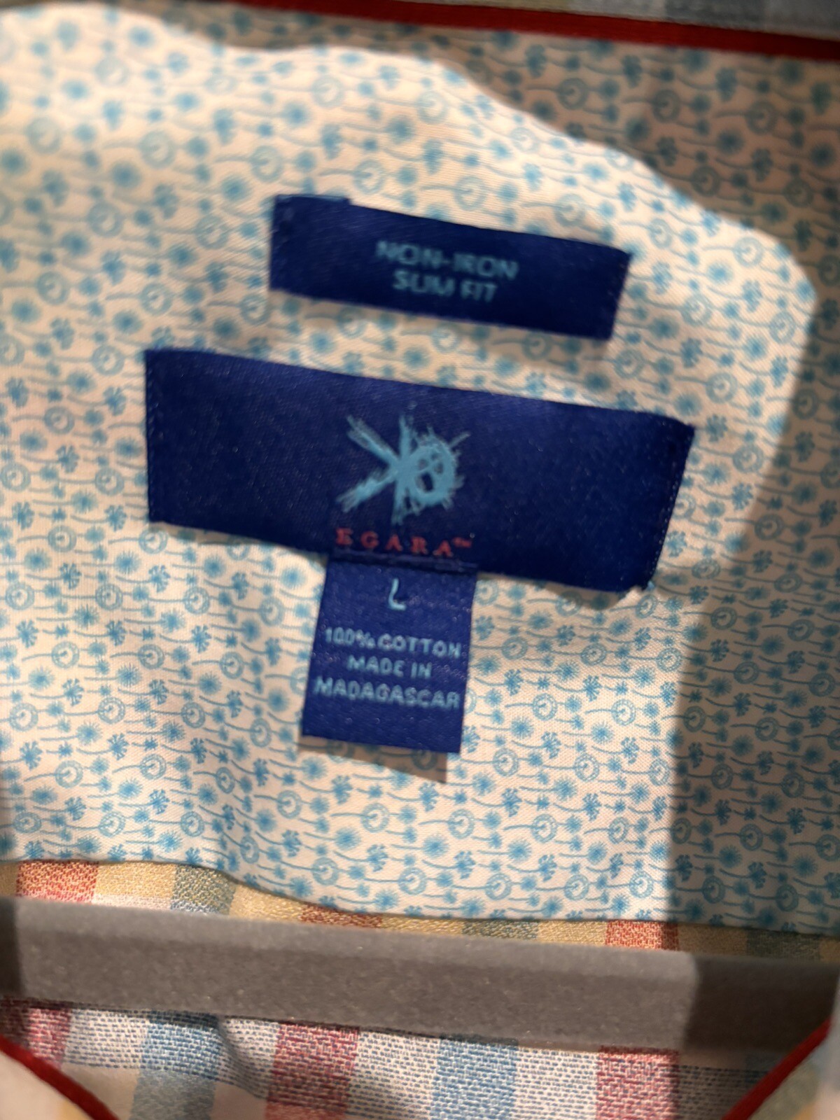как выглядит NWT Egara Mens LARGE Non Iron Button Up Dress Shirt Flip Cuff Colorful Plaid фото
