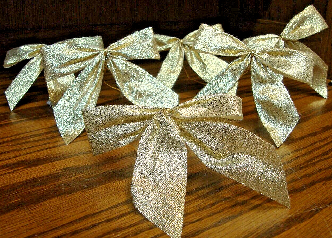 • Lot 6 Small 4" Gold Tone Glitter Wired Bows for Gifts or Christmas Tree 869