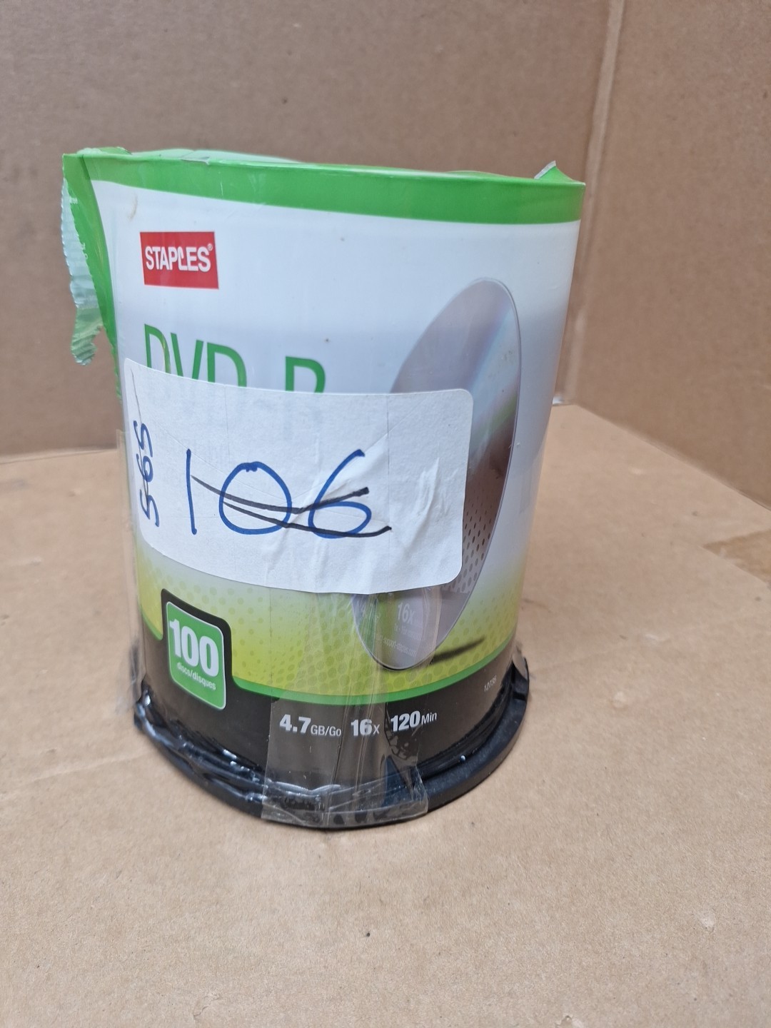 как выглядит Staples DVD R 4.7GB 120min 16X Recordable Blank Video Discs 100 Pac NEW See Note фото