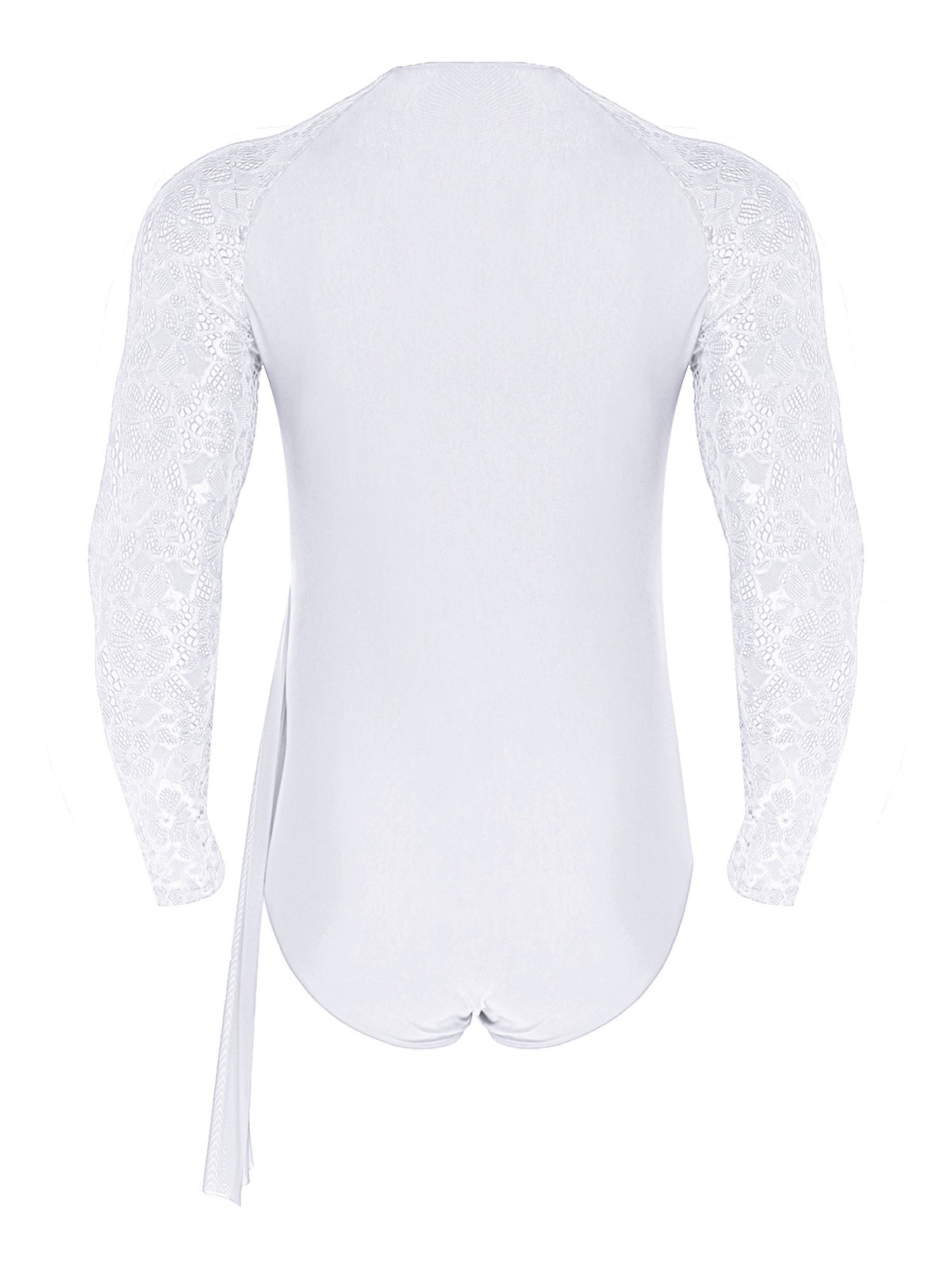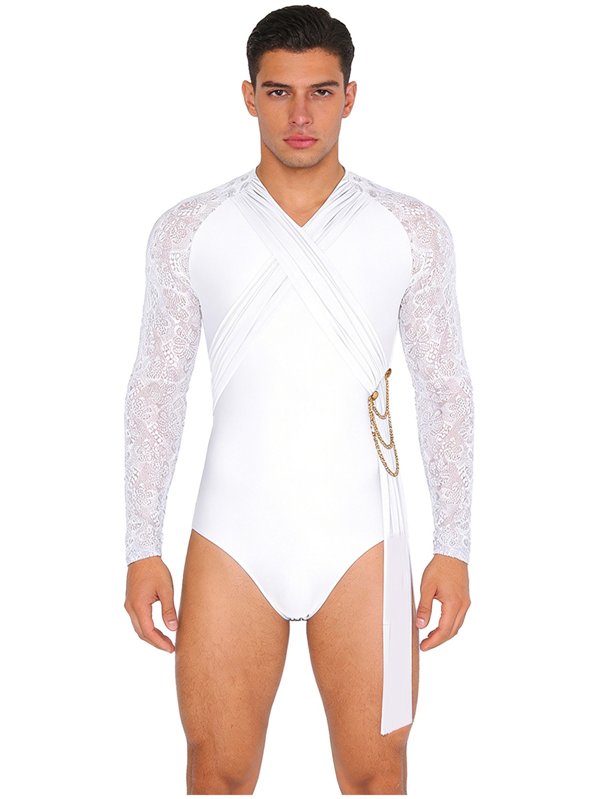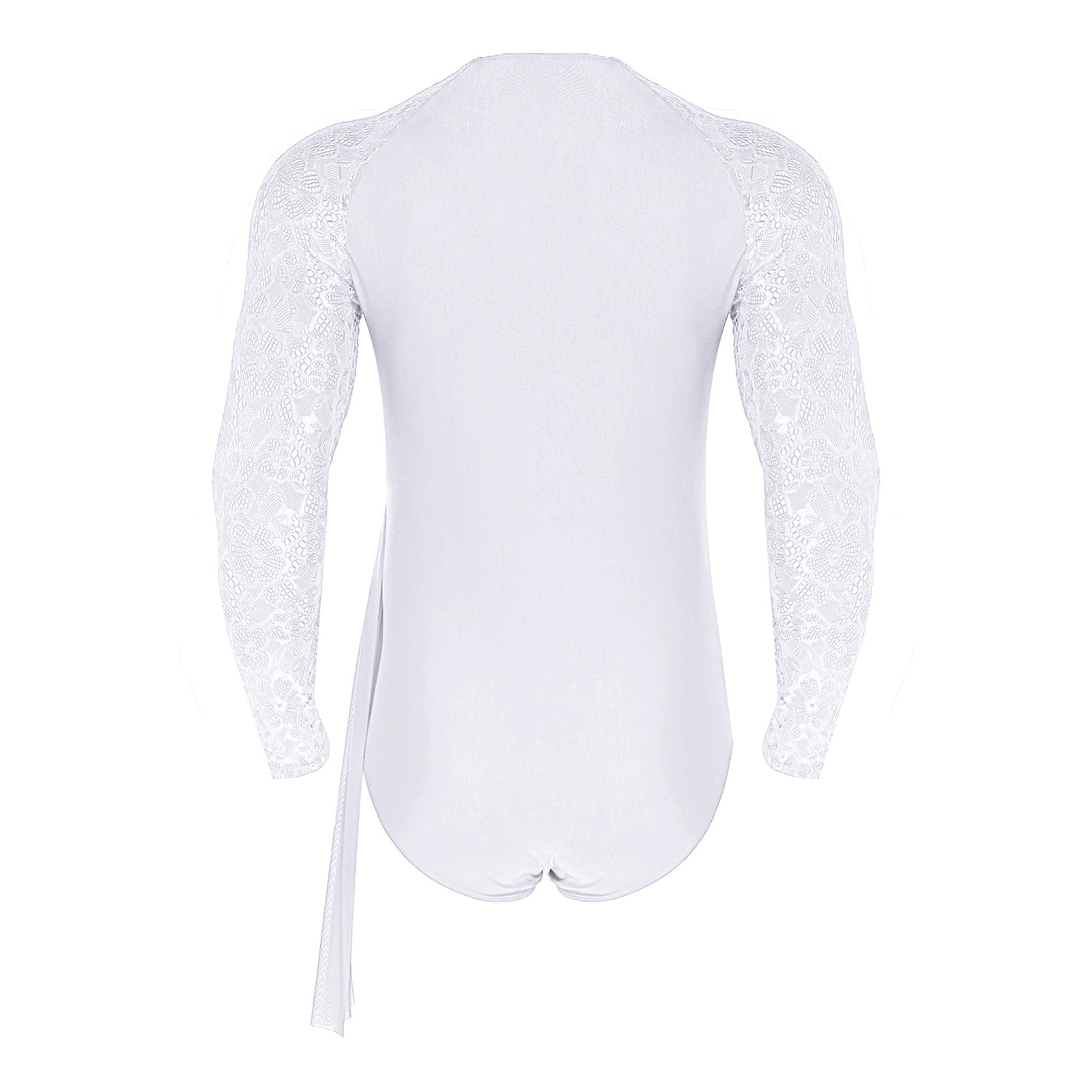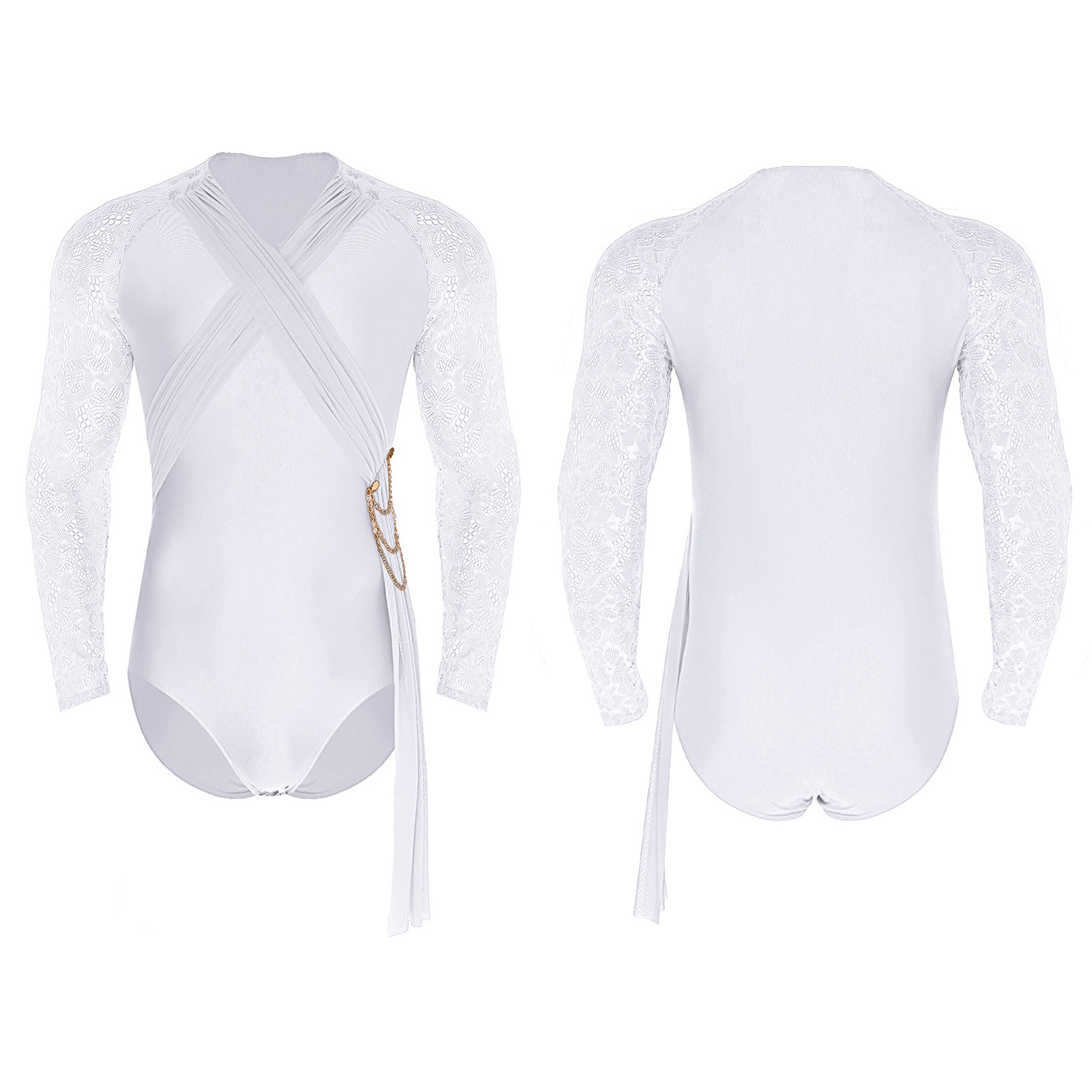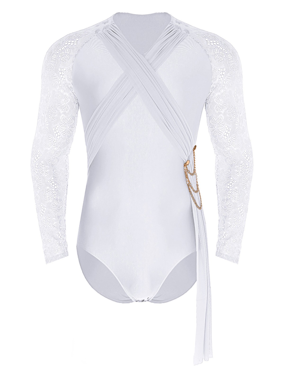 как выглядит Mens Jumpsuit Gymnastics Leotard Tassel Bodysuit Chain Latin Floral Dance Lace фото