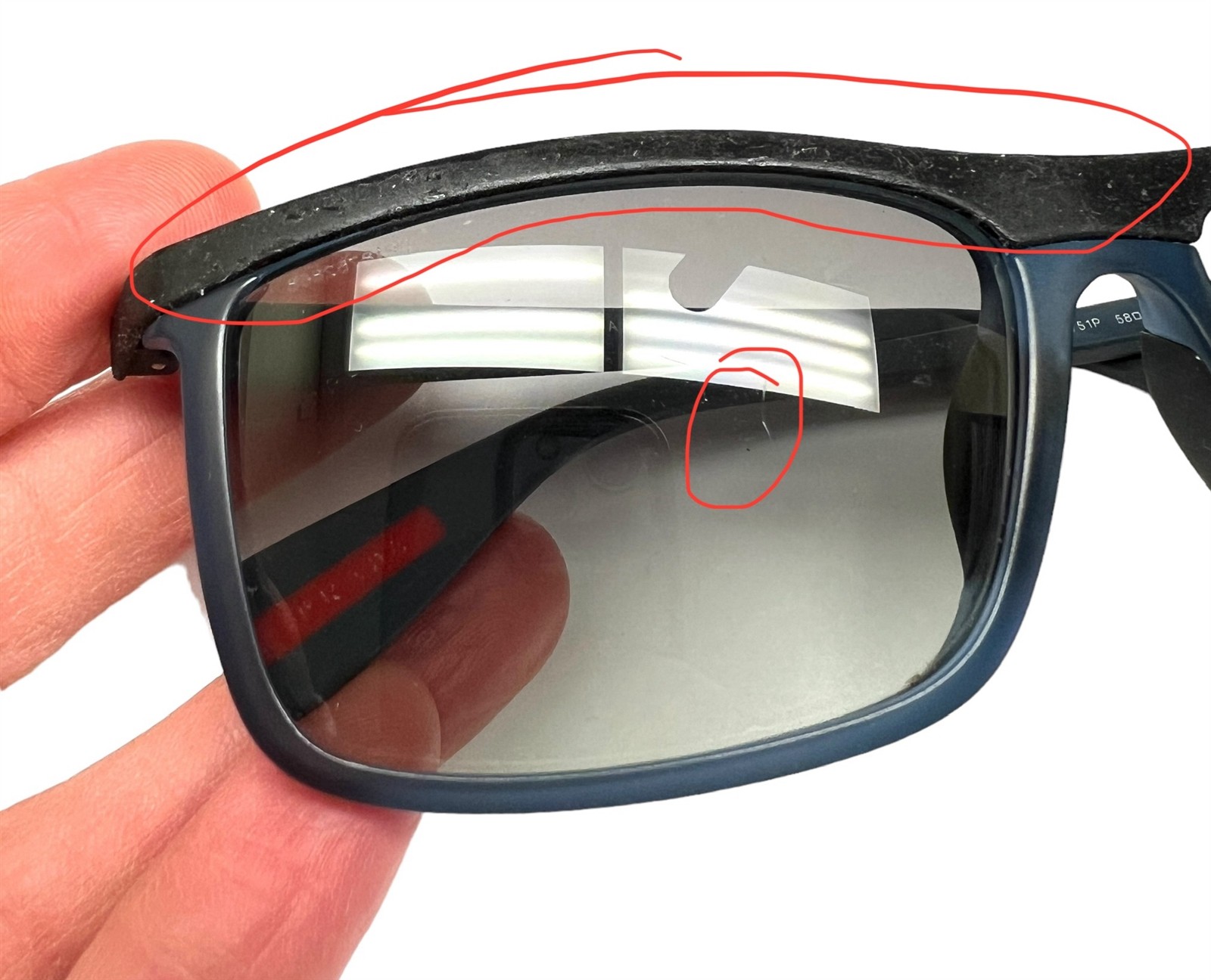 как выглядит Prada SPR 51P JAP-3M1 Sunglasses Black Rubber on Transparent Matte Blue - READ фото