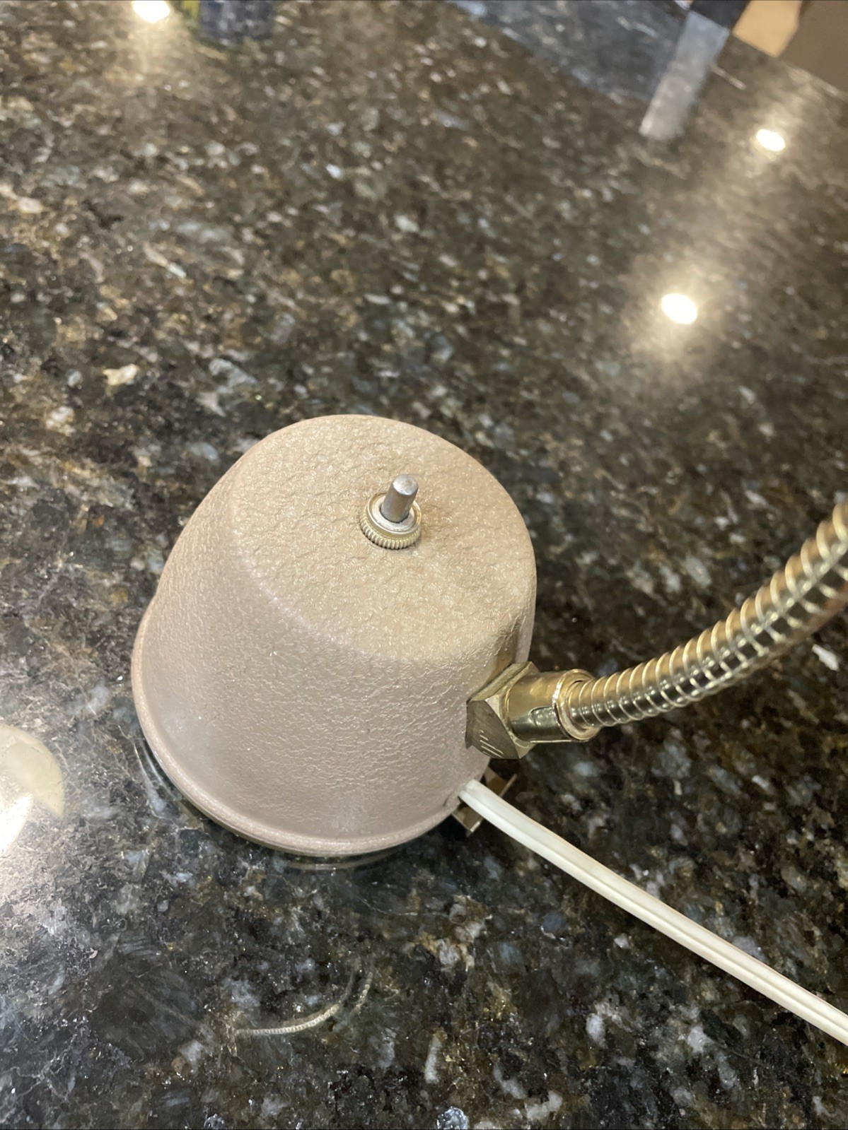 Vintage Beige Tone Cone Bullet Gooseneck Desk Lamp Mid Century Modern Flex Neck