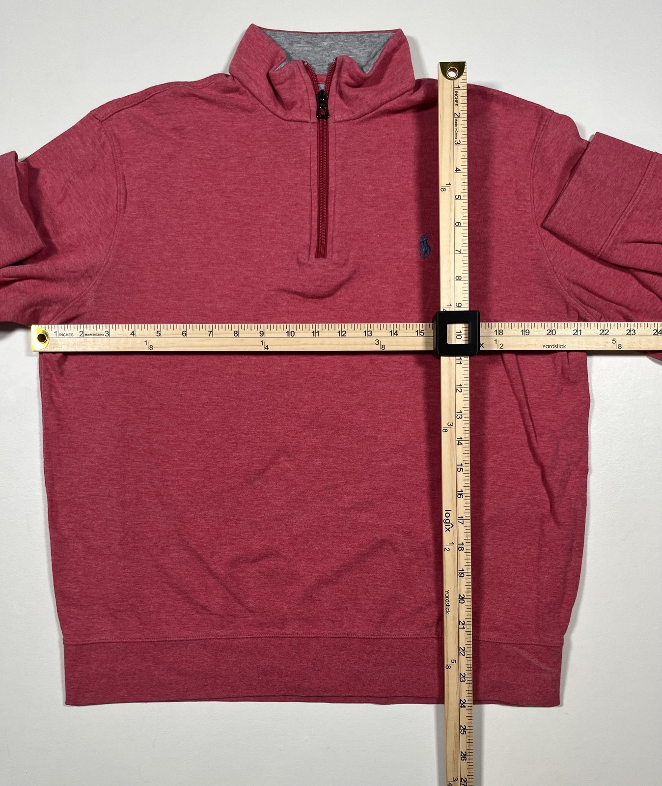 как выглядит Polo Ralph Lauren Pullover Mens Medium Red Quarter Zip Sweater Classic Pony Logo фото