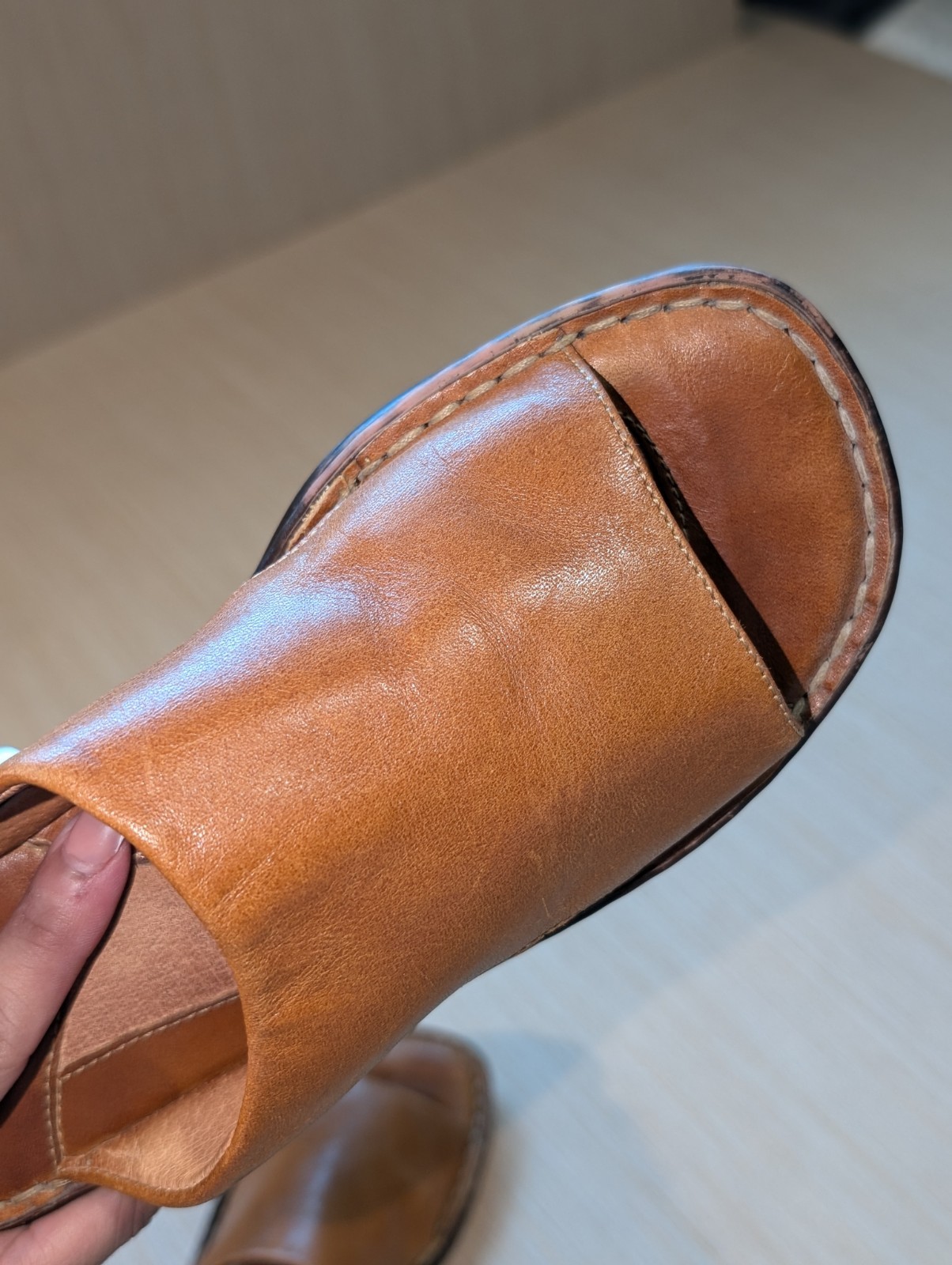 как выглядит Born Slip On Leather Comfort Brown Sandals Size 6M фото