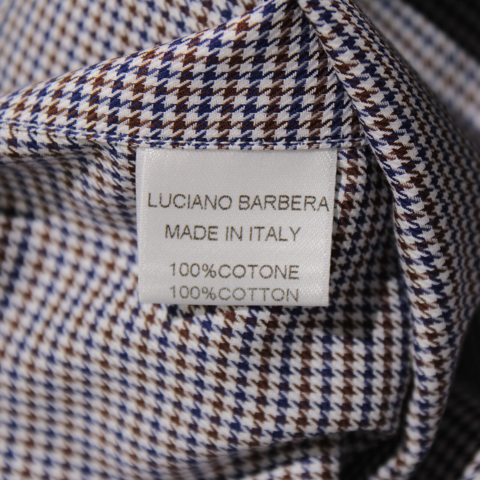 как выглядит Luciano Barbera NWT Casual Button Down Shirt Size XXL in Brown/Blue/White Cotton фото