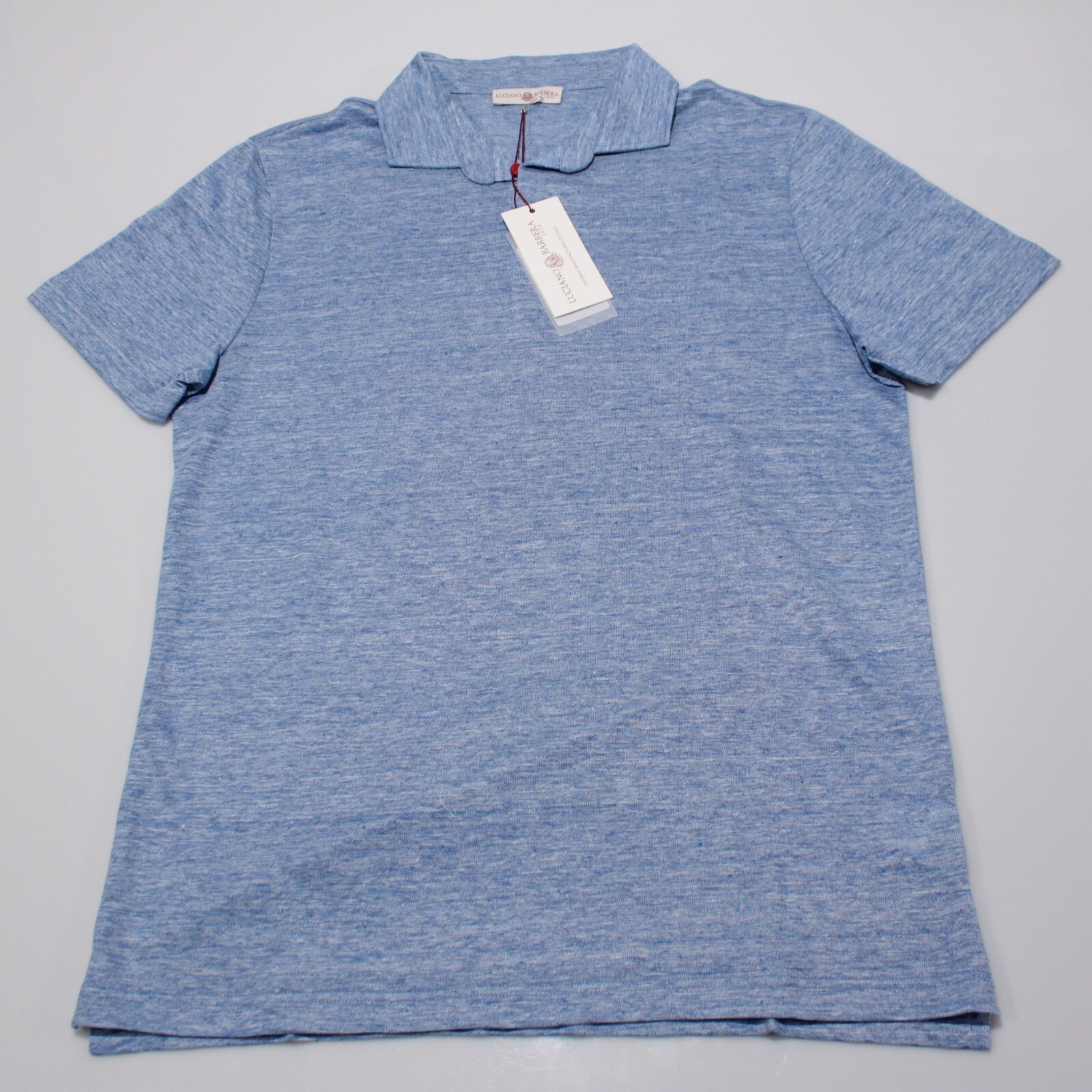 Luciano Barbera NWT Short Sleeve Polo Shirt Size M in Blue Melange 100 Cotton