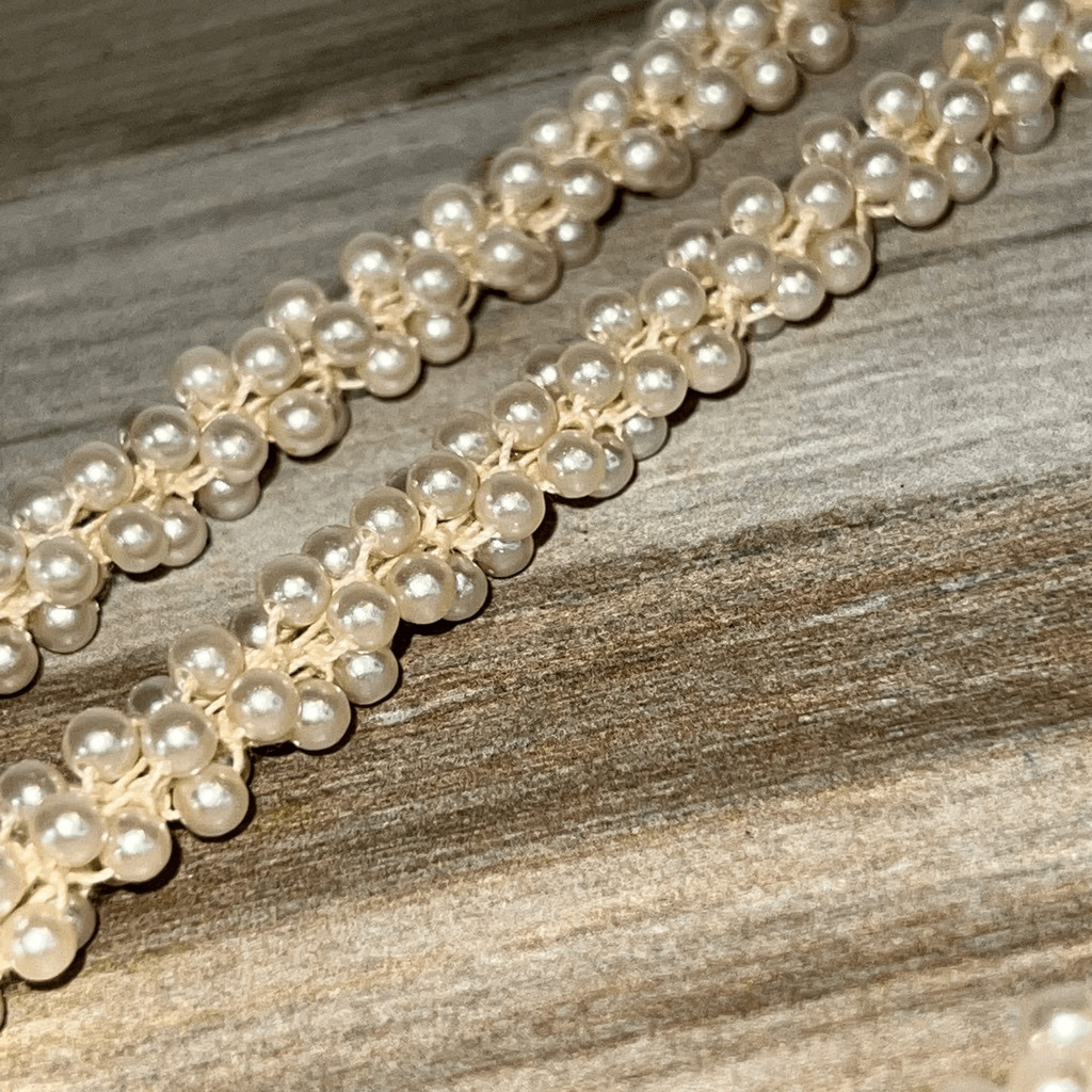 Vintage Cream Lace Long Crochet Necklace With Faux Pearls Wedding Evening Classi