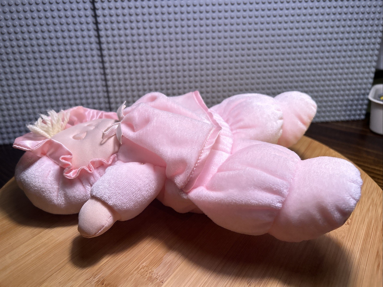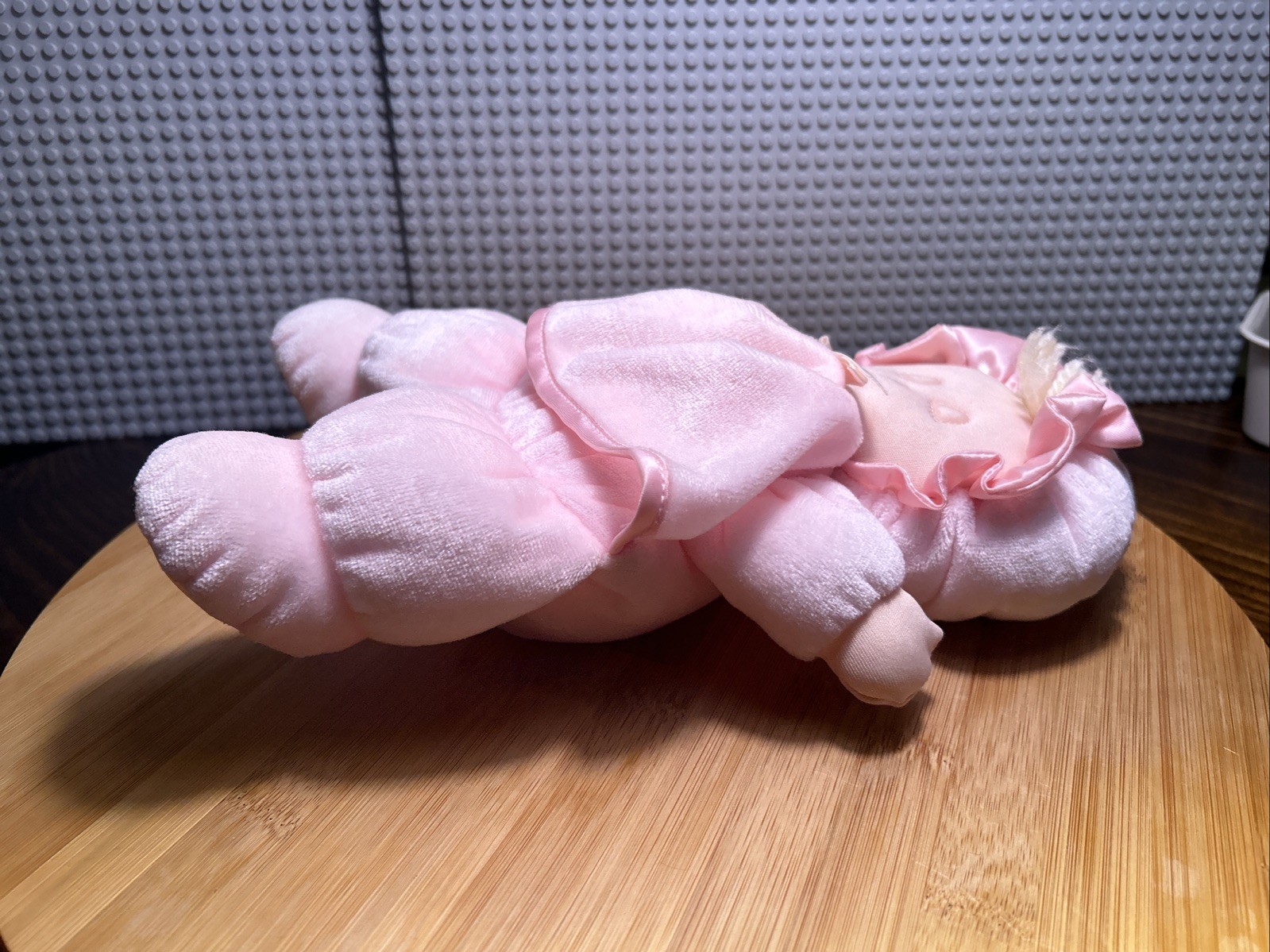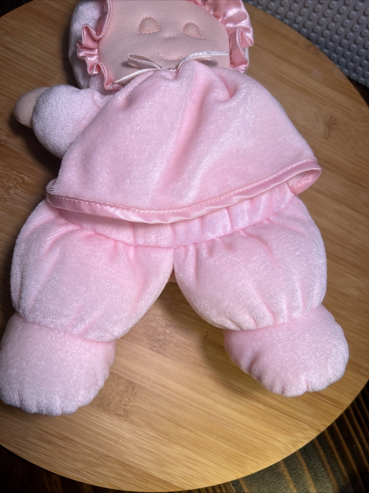 как выглядит Vintage Eden Baby Doll Velour Pink Stuffed Plush Satin Trim Sleeping Eyes 11" фото