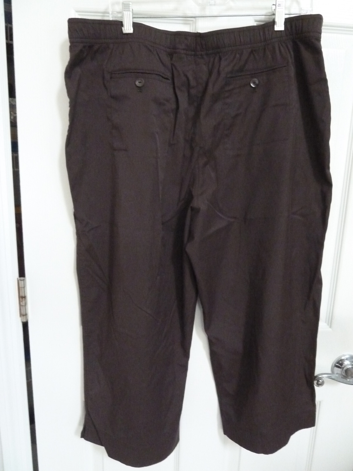 как выглядит CHICOS Sz 3 16 XL Wide Leg Cropped Pants Elastic Waist Back Brown фото