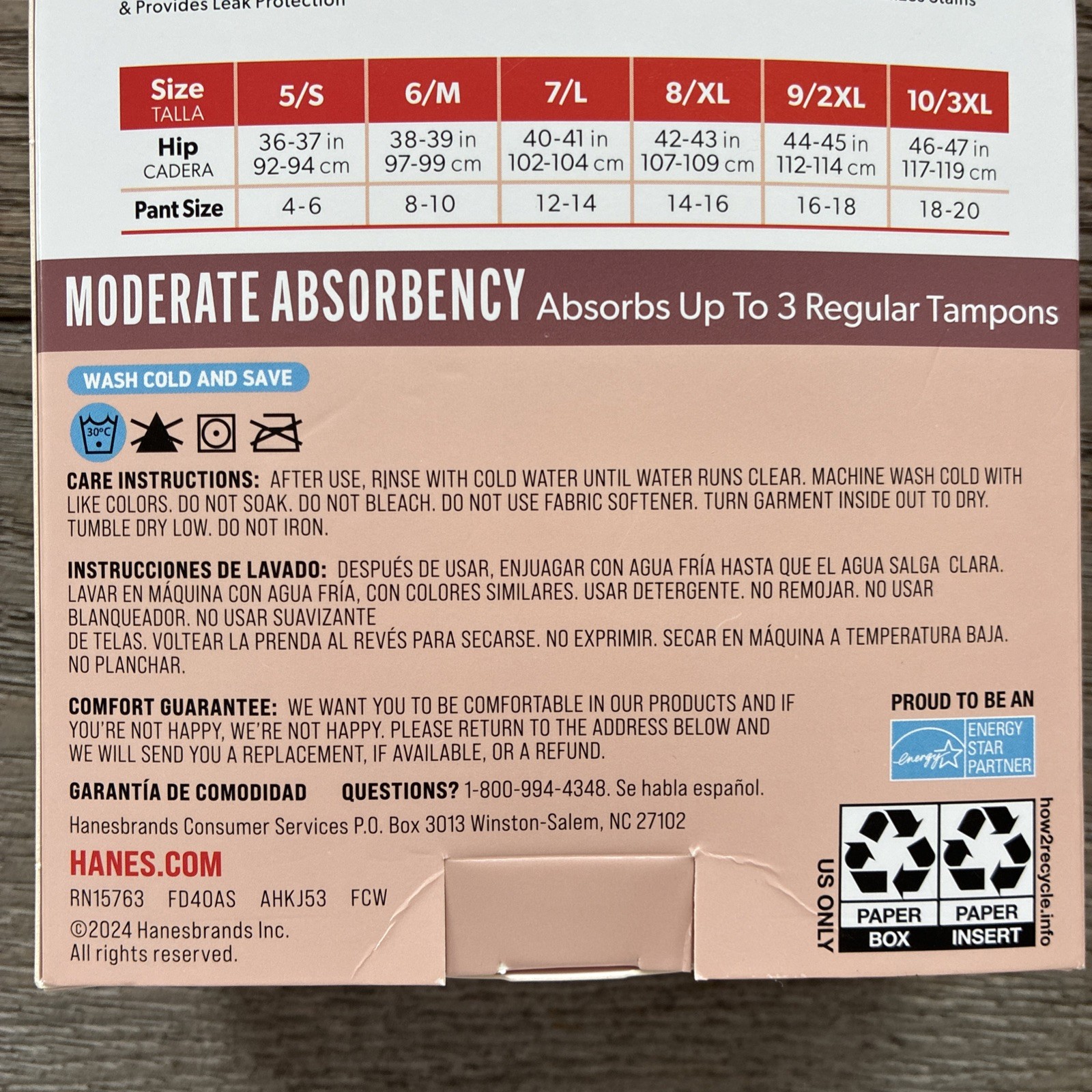 Hanes Women's Comfort, Period Moderate Protection Briefs - Size 10/3XL - New 3