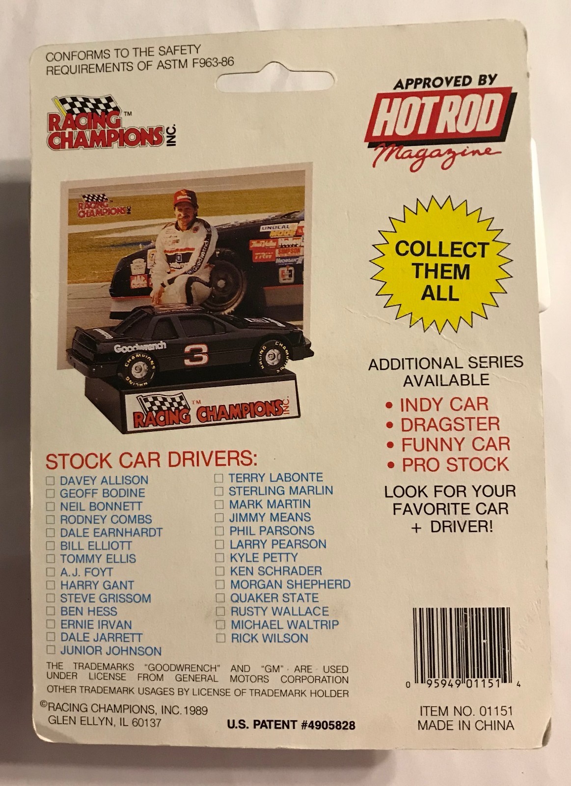 1989 28 DAVEY ALLISON SERIES 1- PLASTIC TIRE -TEXACO NO NAME 1268