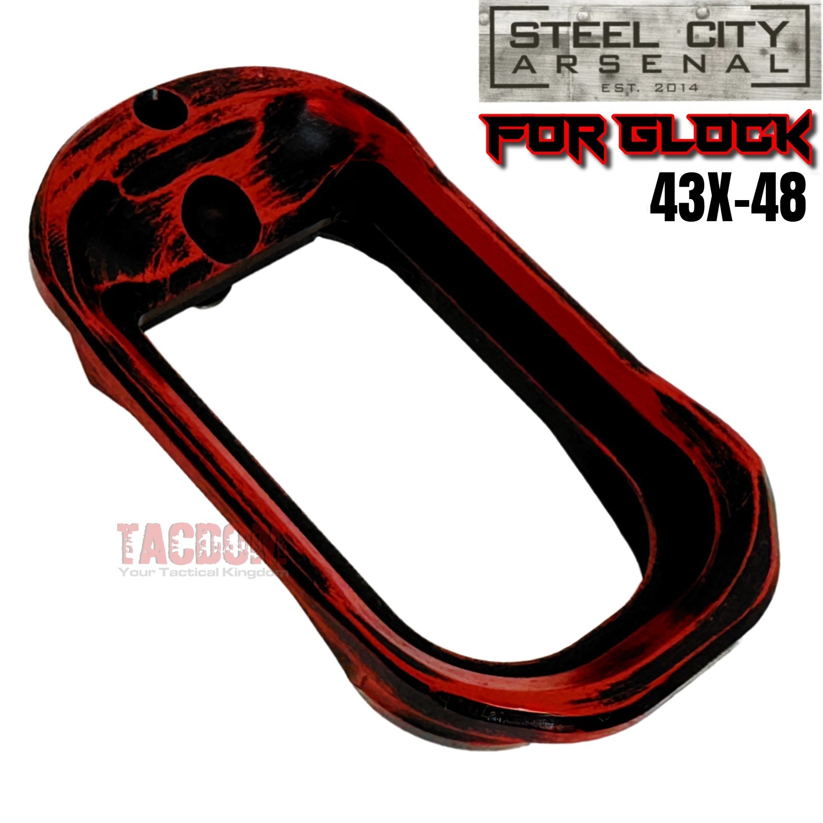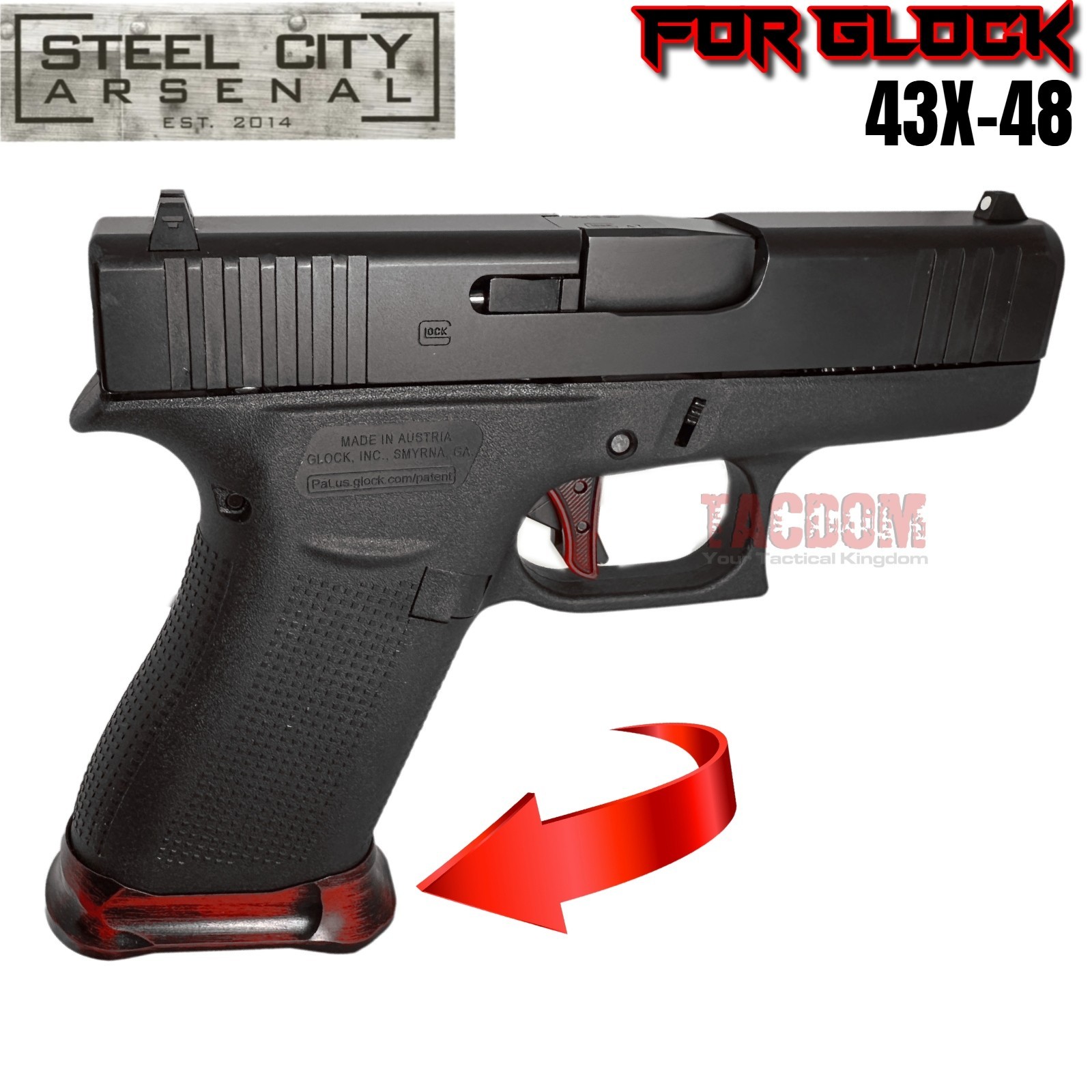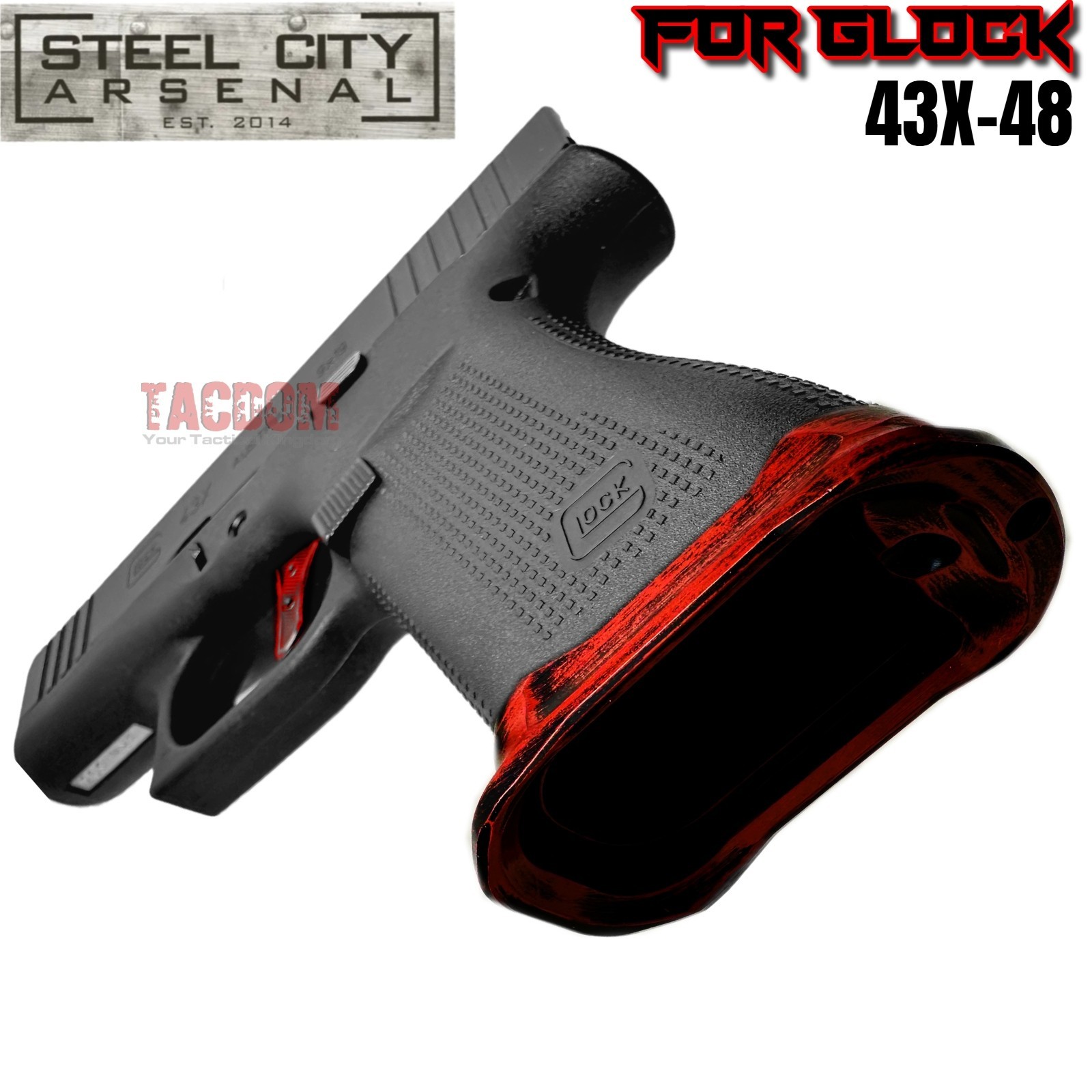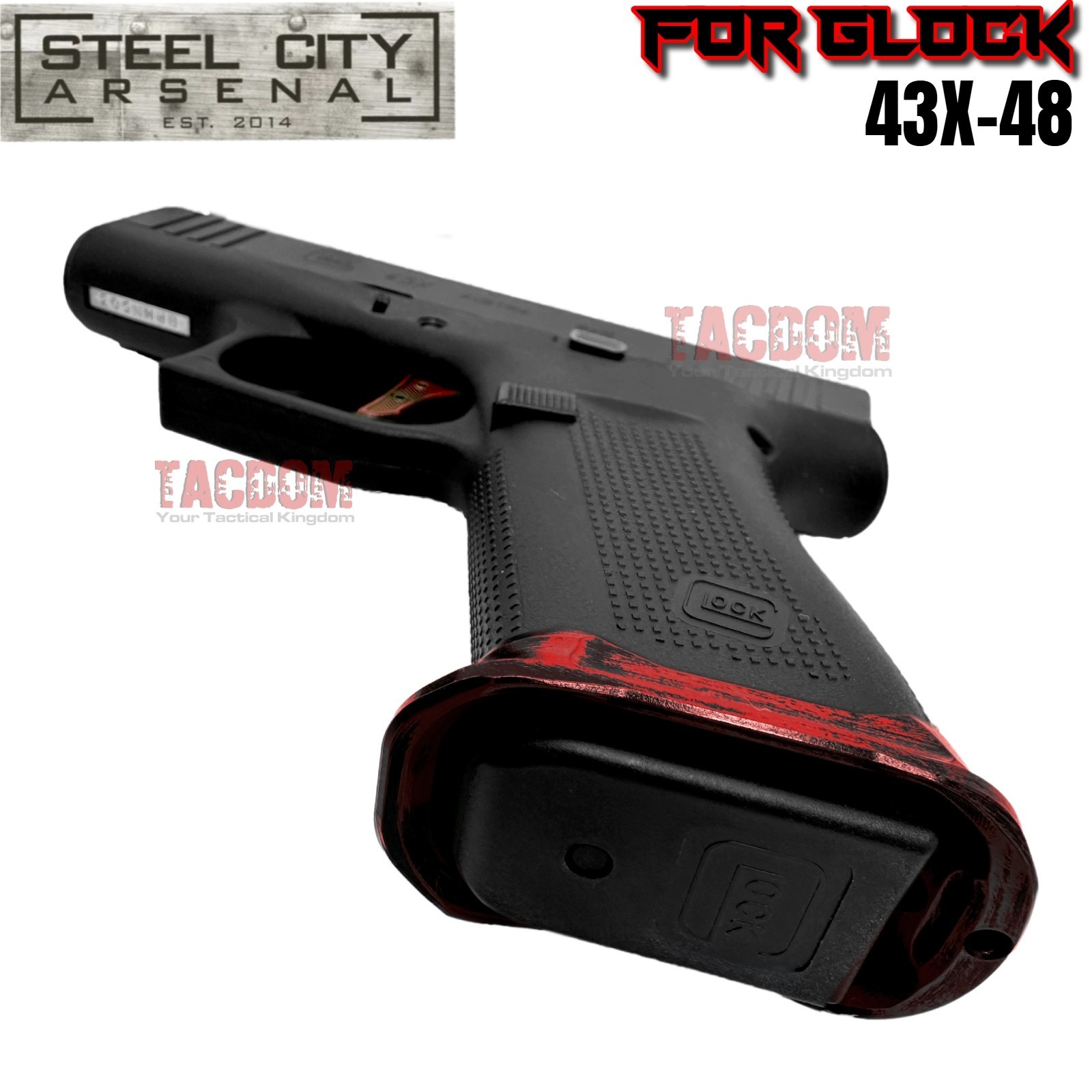 STEEL CITY for GLOCK 43X 48 ENHANCED MAGWELL BATTLEWORN RED Billet Aluminum SLIM