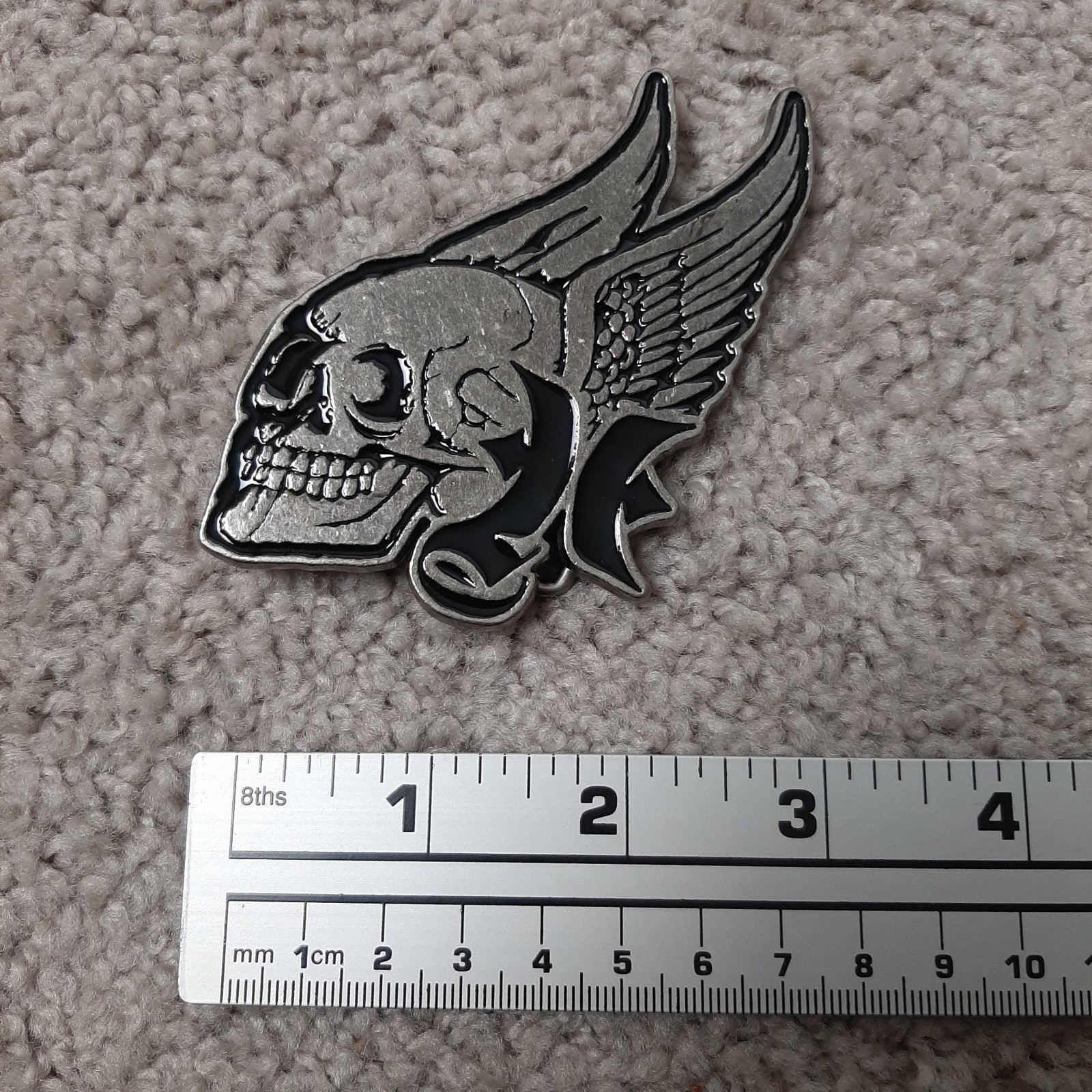 Winged Skull Belt Buckle-Metal with Black Enamel, Fits 1.5 Belt