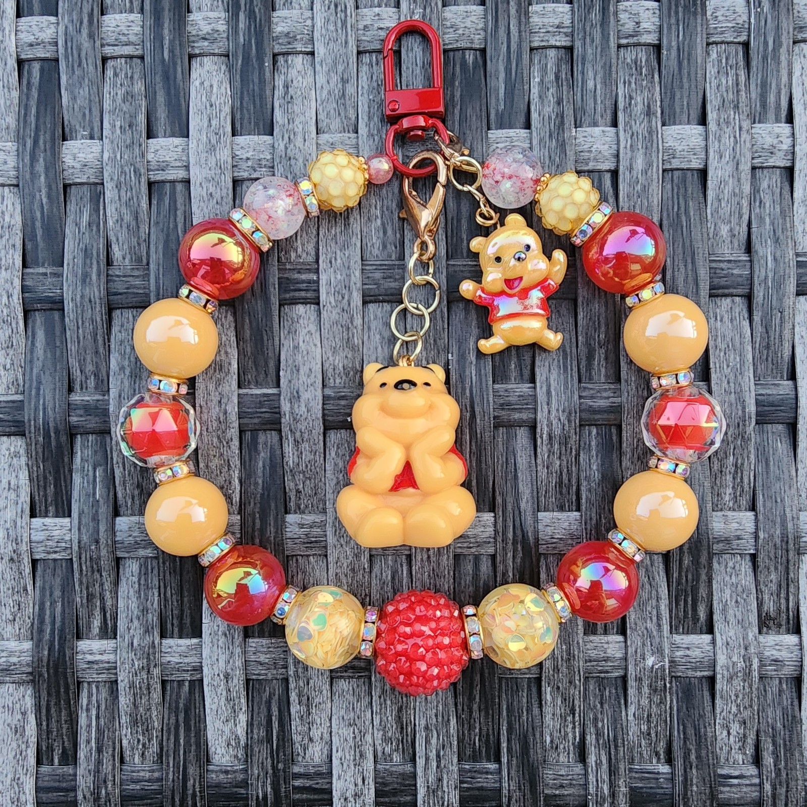 Beaded Keychain, Phone, Bag Charm, Purse Charm, Bag Clip - Winnie The Pooh Theme