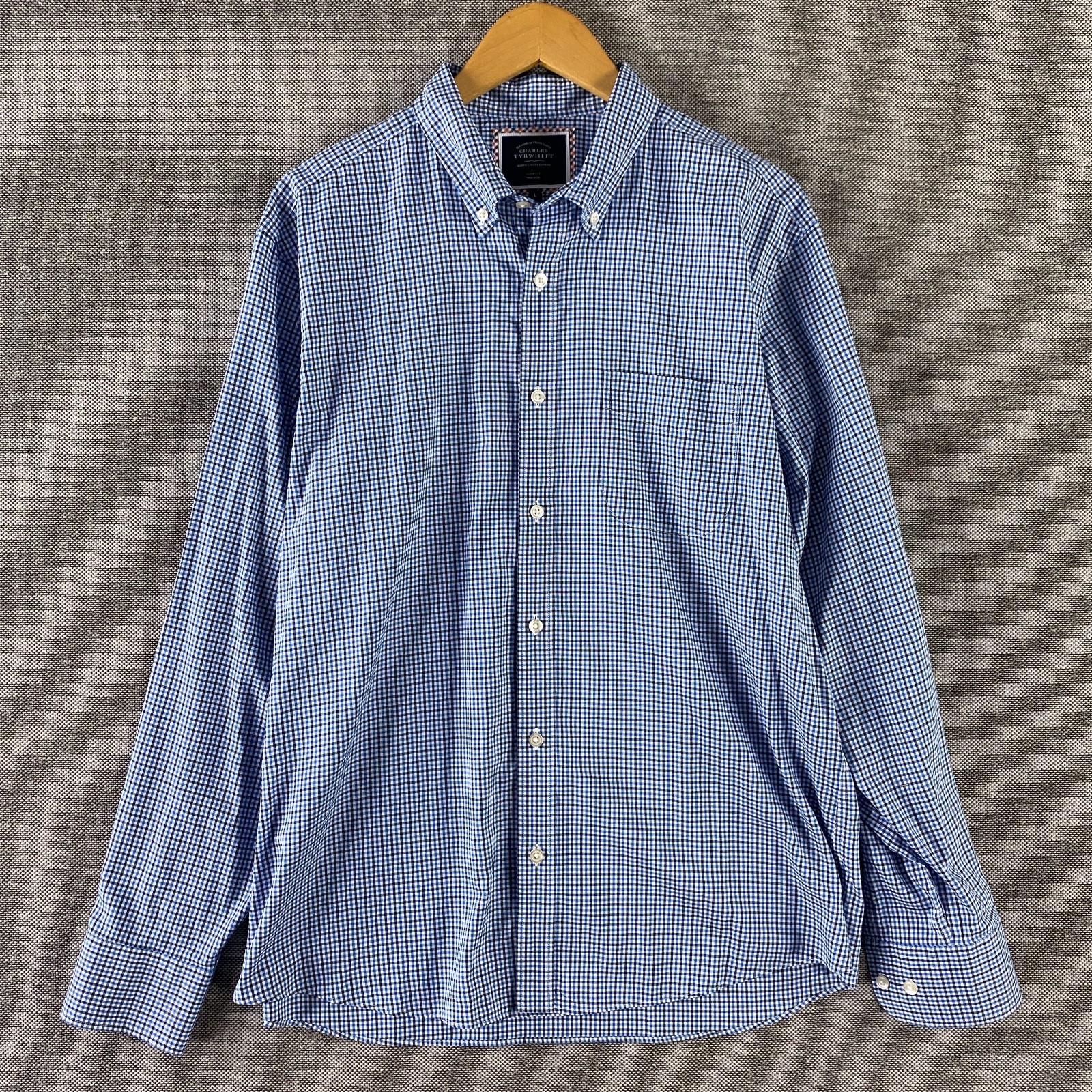 как выглядит Charles Tyrwhitt Slim Fit Non-Iron Button Up Shirt Mens Large Blue Check Cotton фото