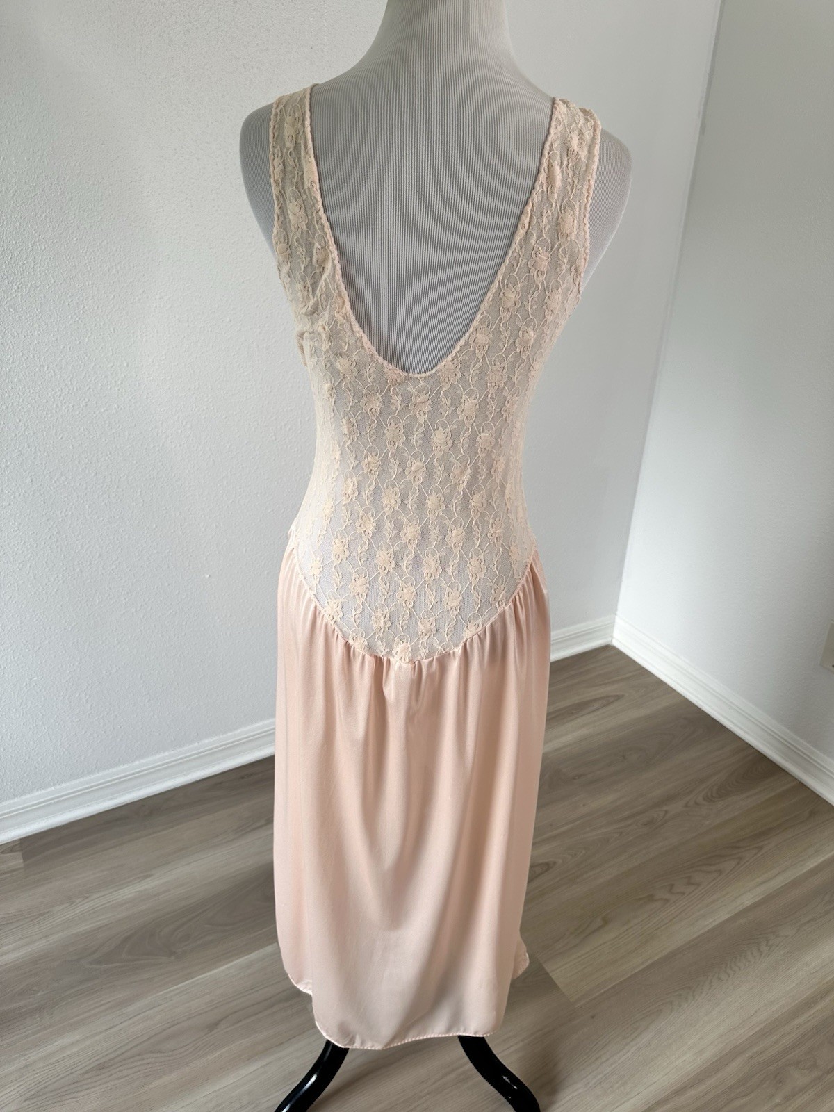 как выглядит Vintage Nylon Dress Slip Neglig e Small Sheer Stretch Lace Bodice Pink Coquette фото