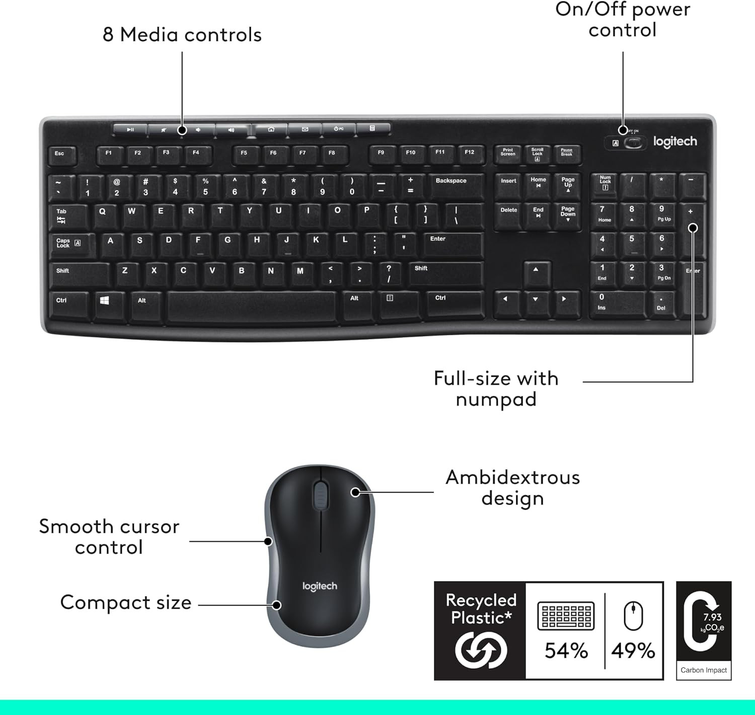 MK270 Wireless Keyboard and Mouse Combo for Windows, 2.4 Ghz, 8 Multimedia Keys,