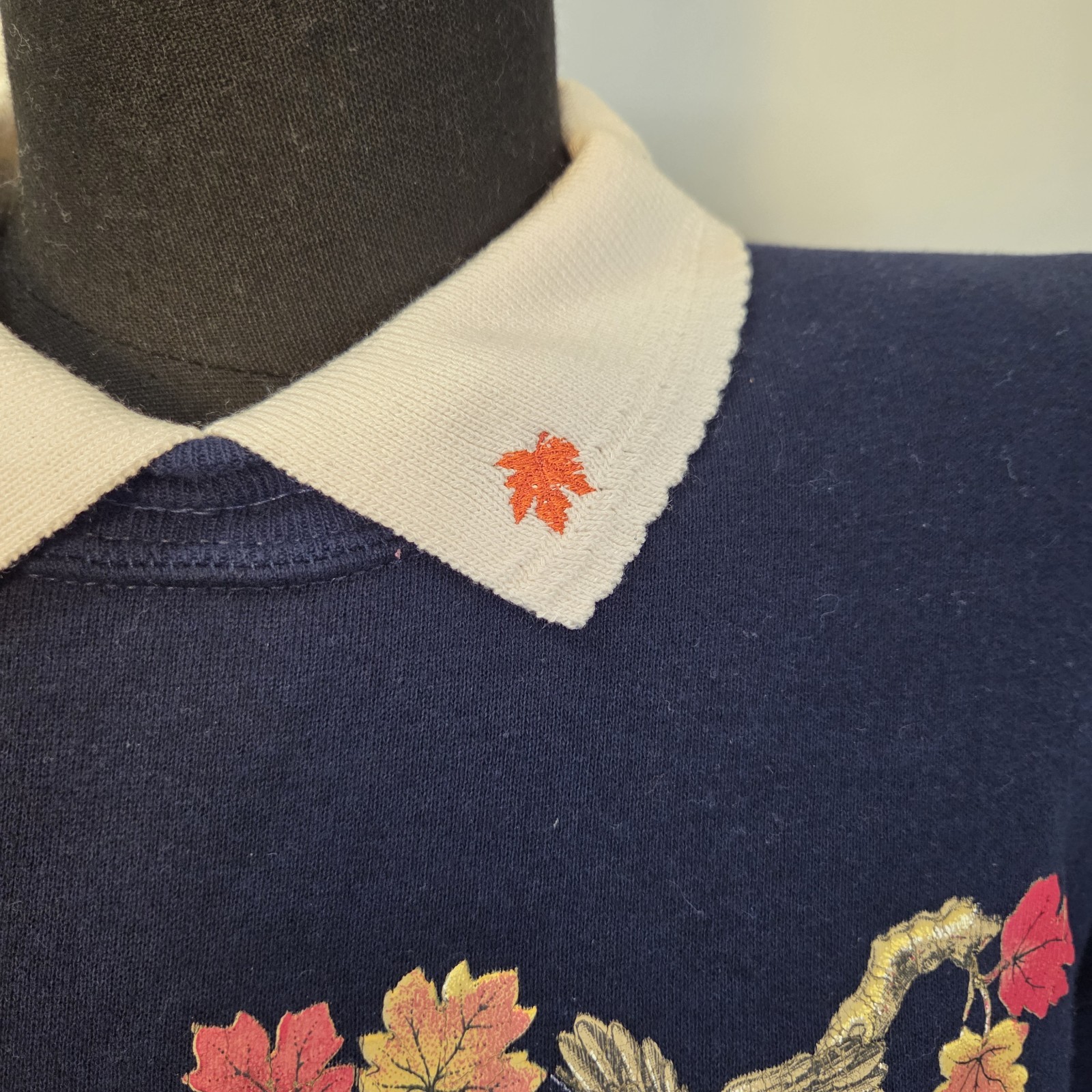 Vintage Morning Sun Sweatshirt Extra Large Navy Fall Leaves Cat Pullover 90s