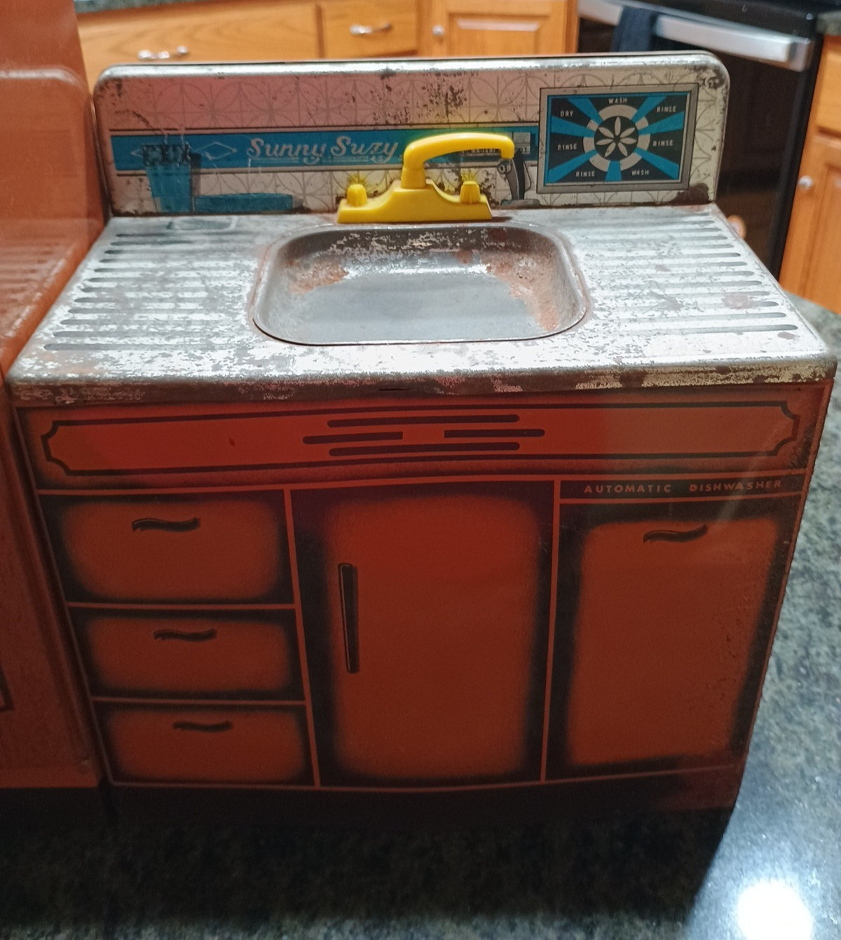 Vintage Wolverine Sunny Suzy Metal Tin Kitchen Toy Set: Stove Refrigerator Sink