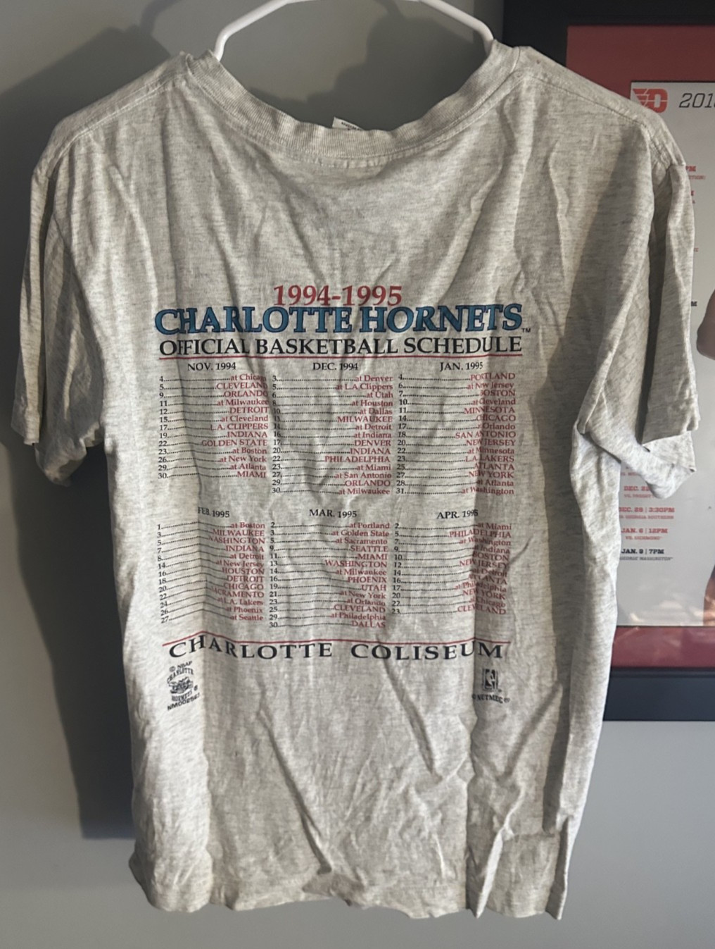 • 1994 Charlotte Hornets Schedule T-Shirt Youth L Large Vintage Nutmeg