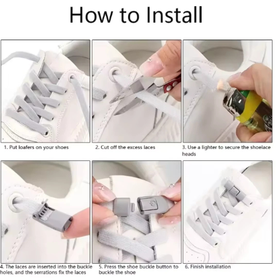 2Pairs Without Ties Elastic Laces No Tie Shoe Laces Press Lock Shoelaces