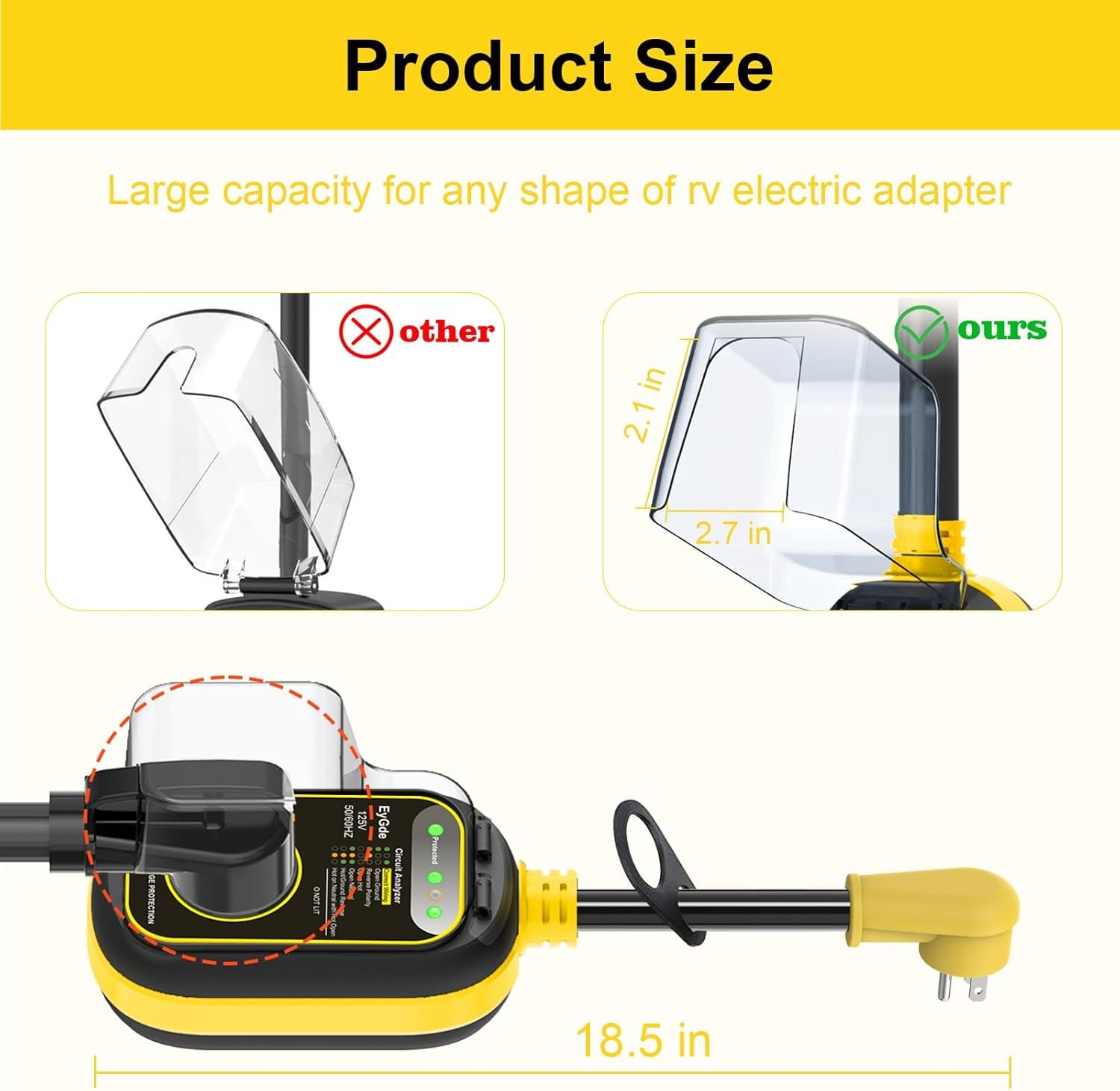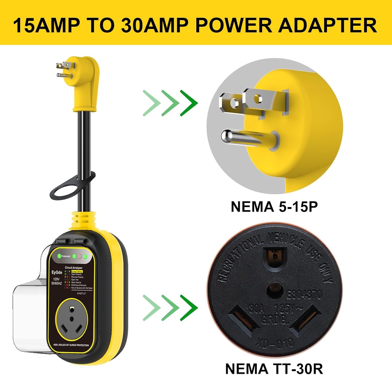 как выглядит 30 Amp to 15 Amp 110 RV Adapter with Surge Protector Yellow 15M/30F фото