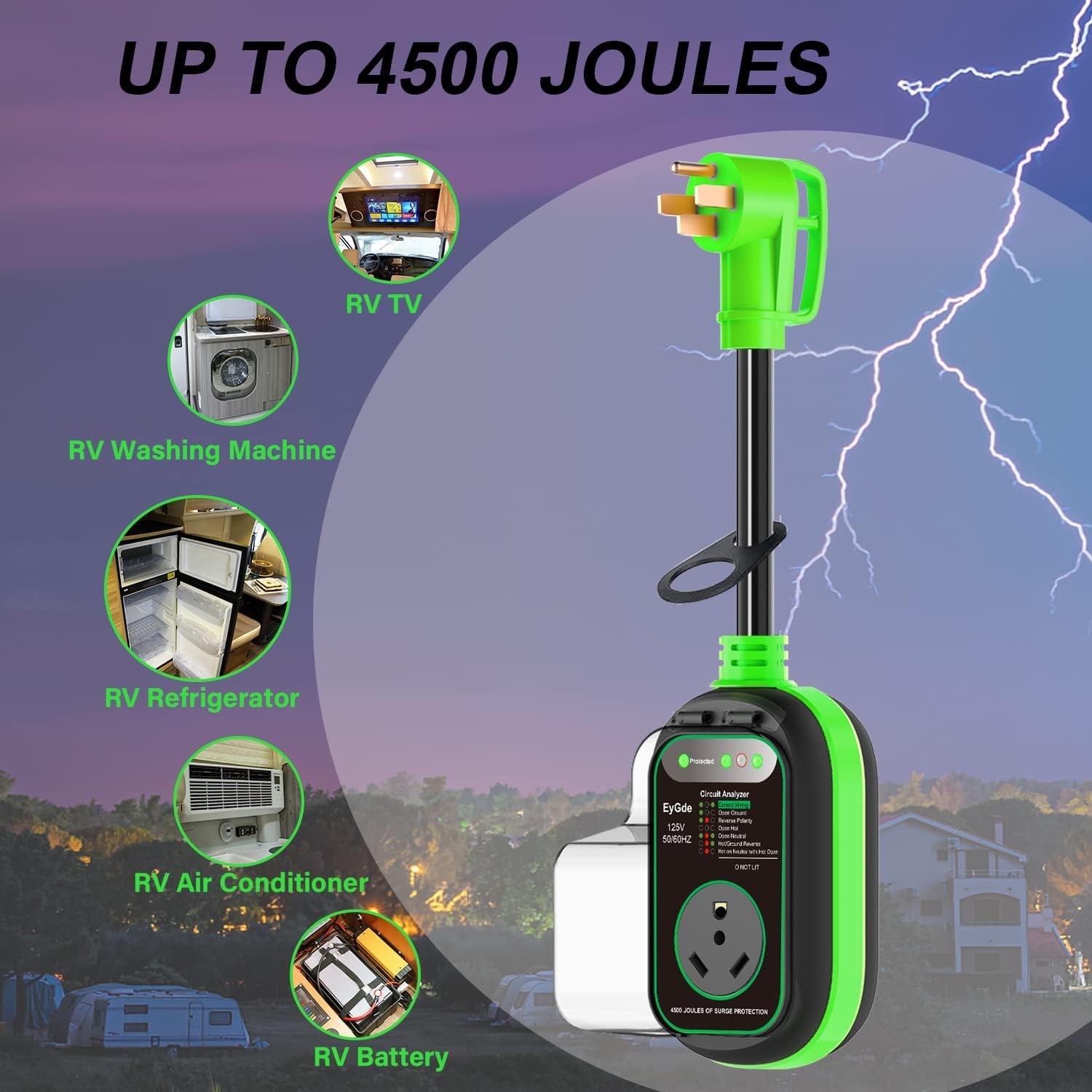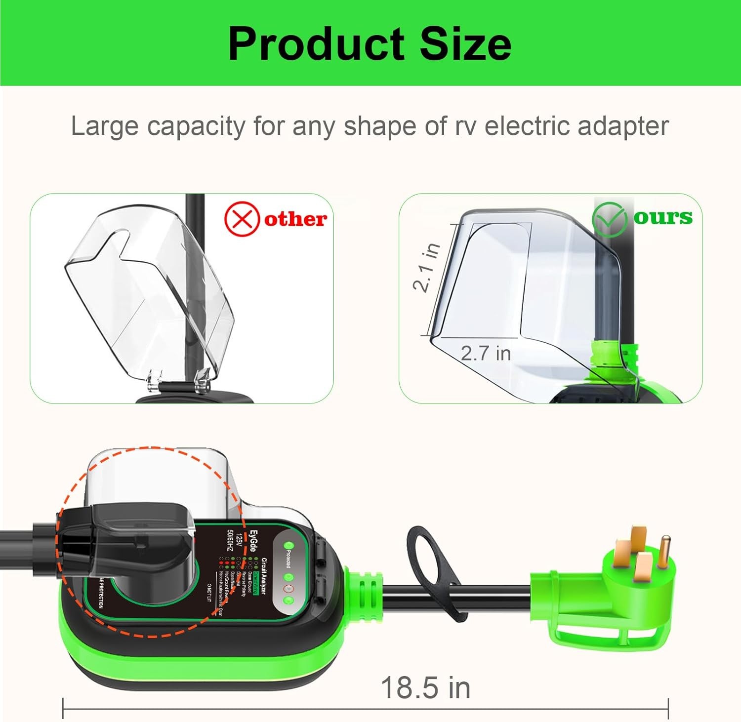 как выглядит 50 Amp to 30 Amp RV Adapter with Surge Protector, Patented Green 50M/30F фото