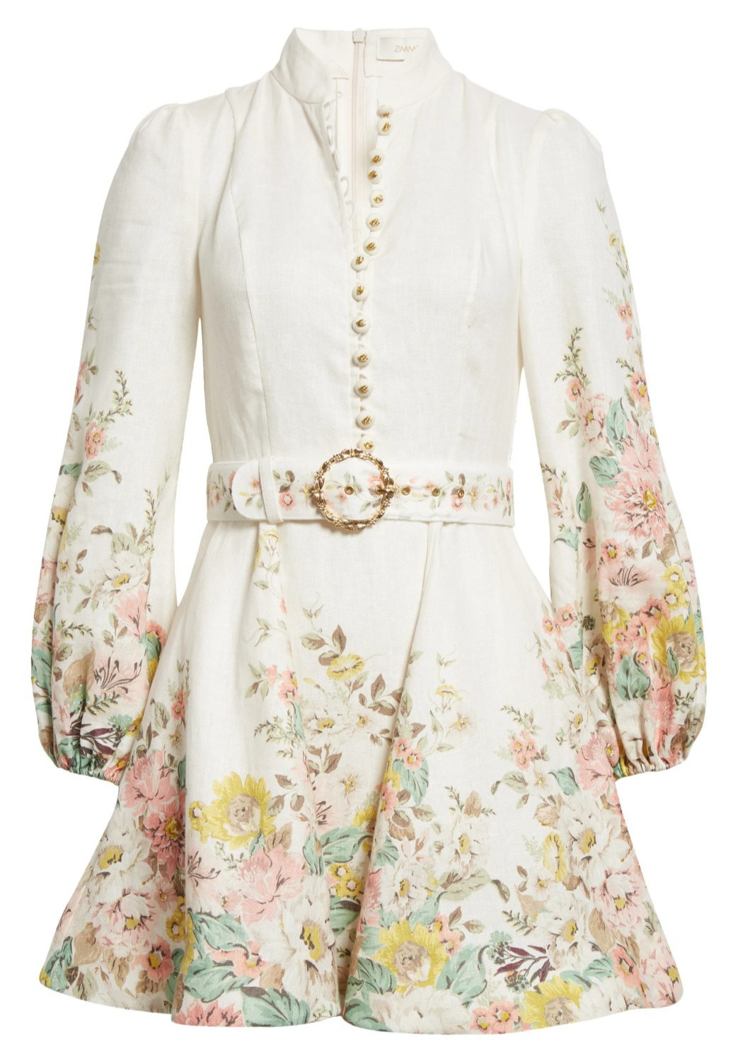 Zimmermann Women's Matchmaker Linen Mini Dress Ivory Floral Size 3 / US 10