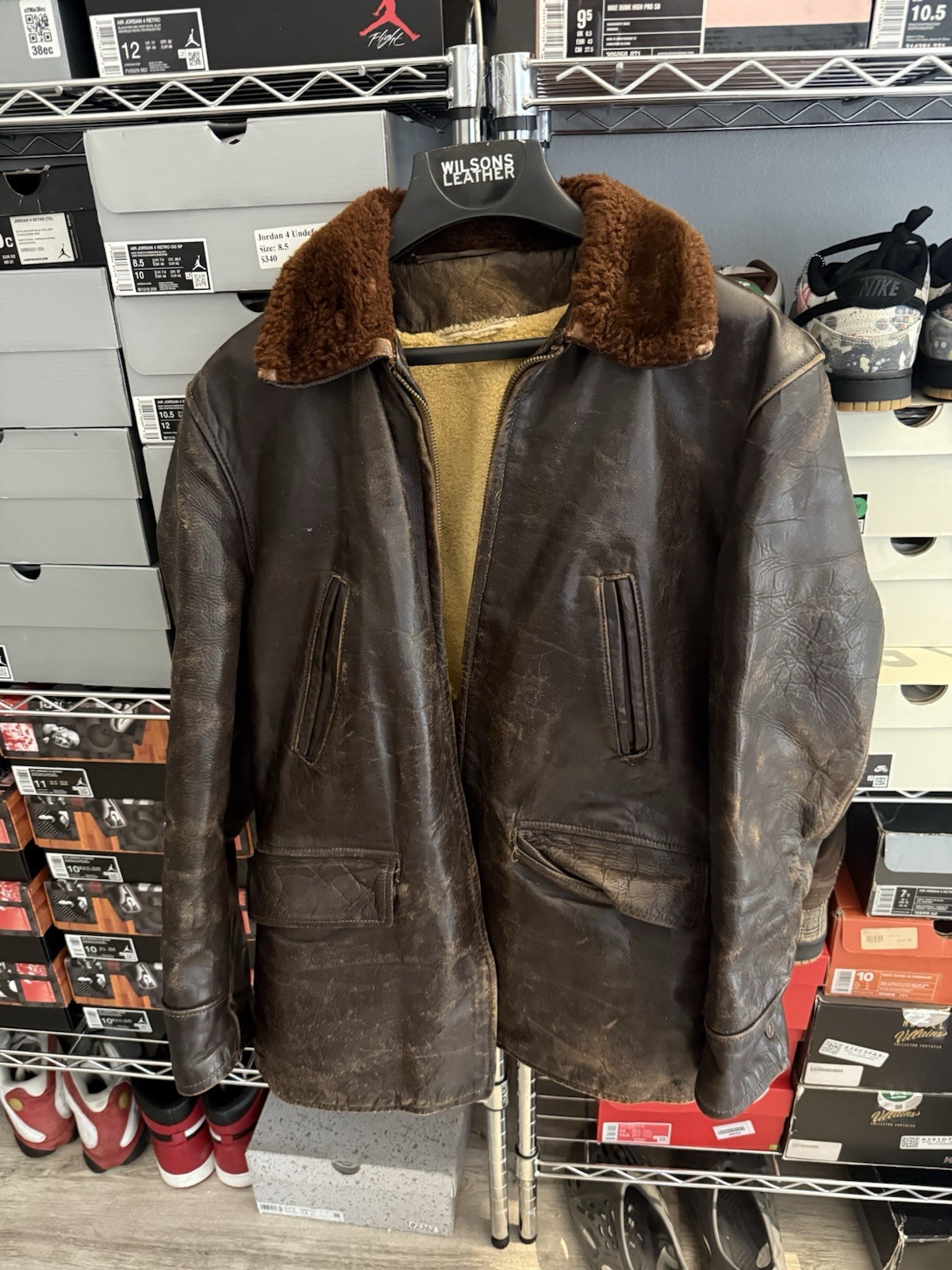 как выглядит Vintage 50s Hercules Sears Steerhide Leather Bomber Jacket Fur Lining Men s фото