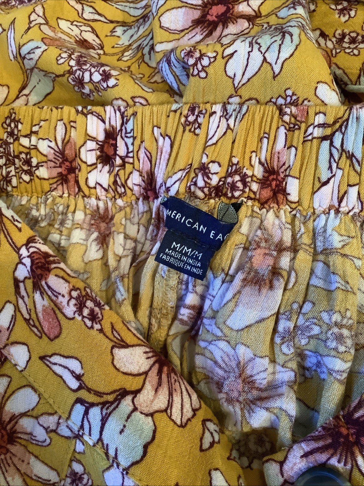 American Eagle Yellow Floral Palazzo Pants Womens Wide Leg Pants Sz M