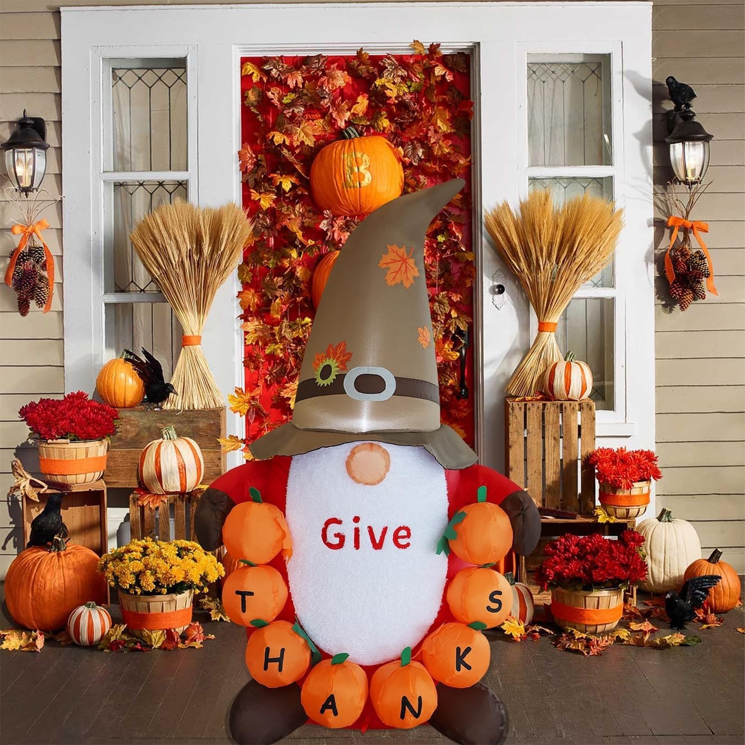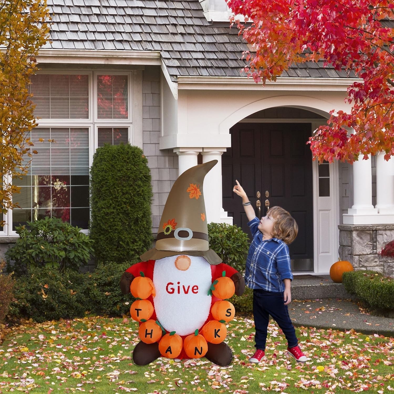 4FT Thanksgiving Inflatable Gnome Blow up Animated Fall Outdoor Yard Decorations