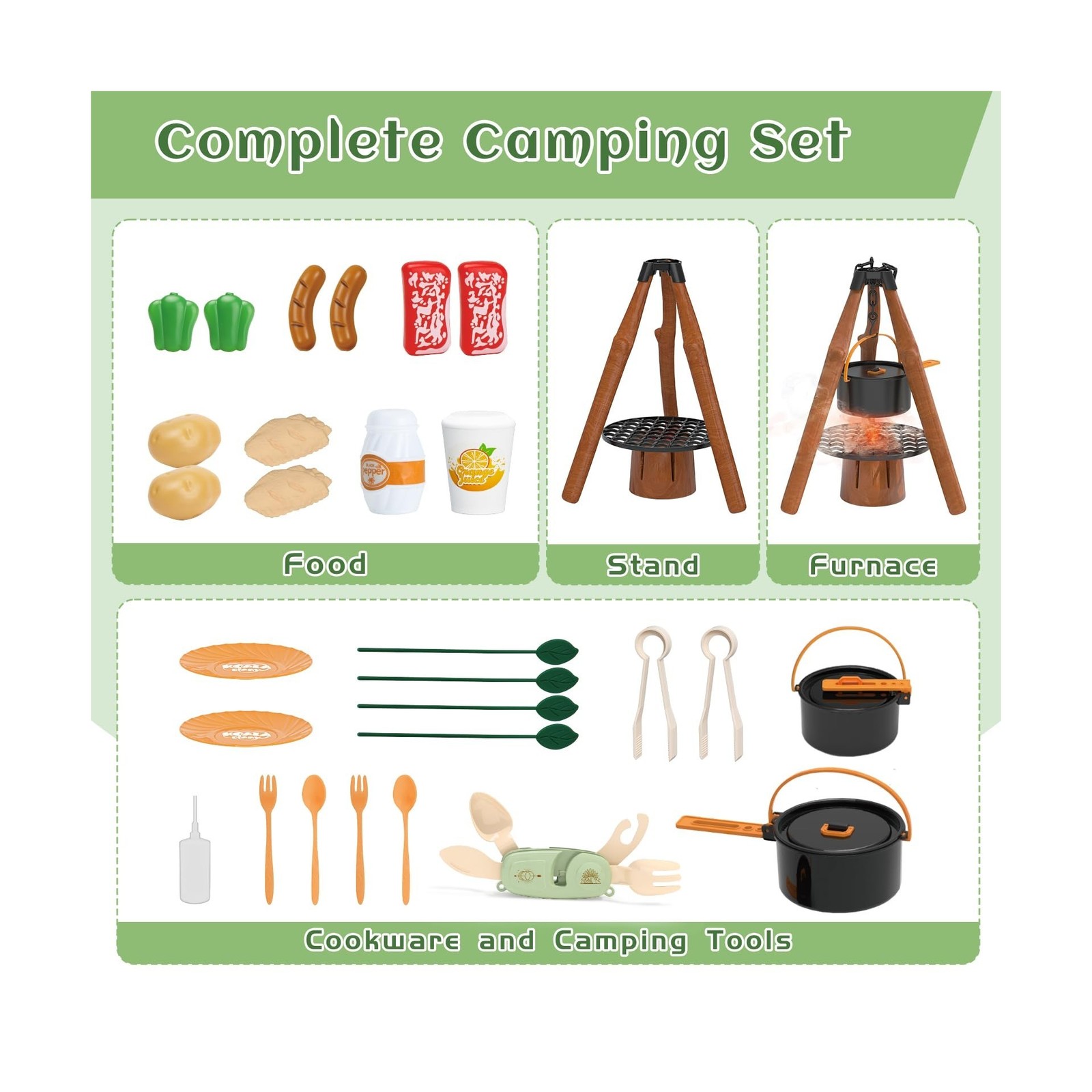 Kids Camping Toy Set, Pretend Play Cooking Set with Spray Stove, Fo... Fast Ship
