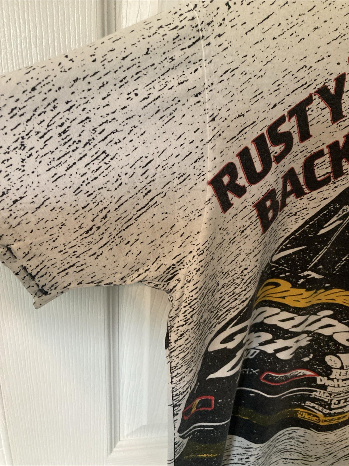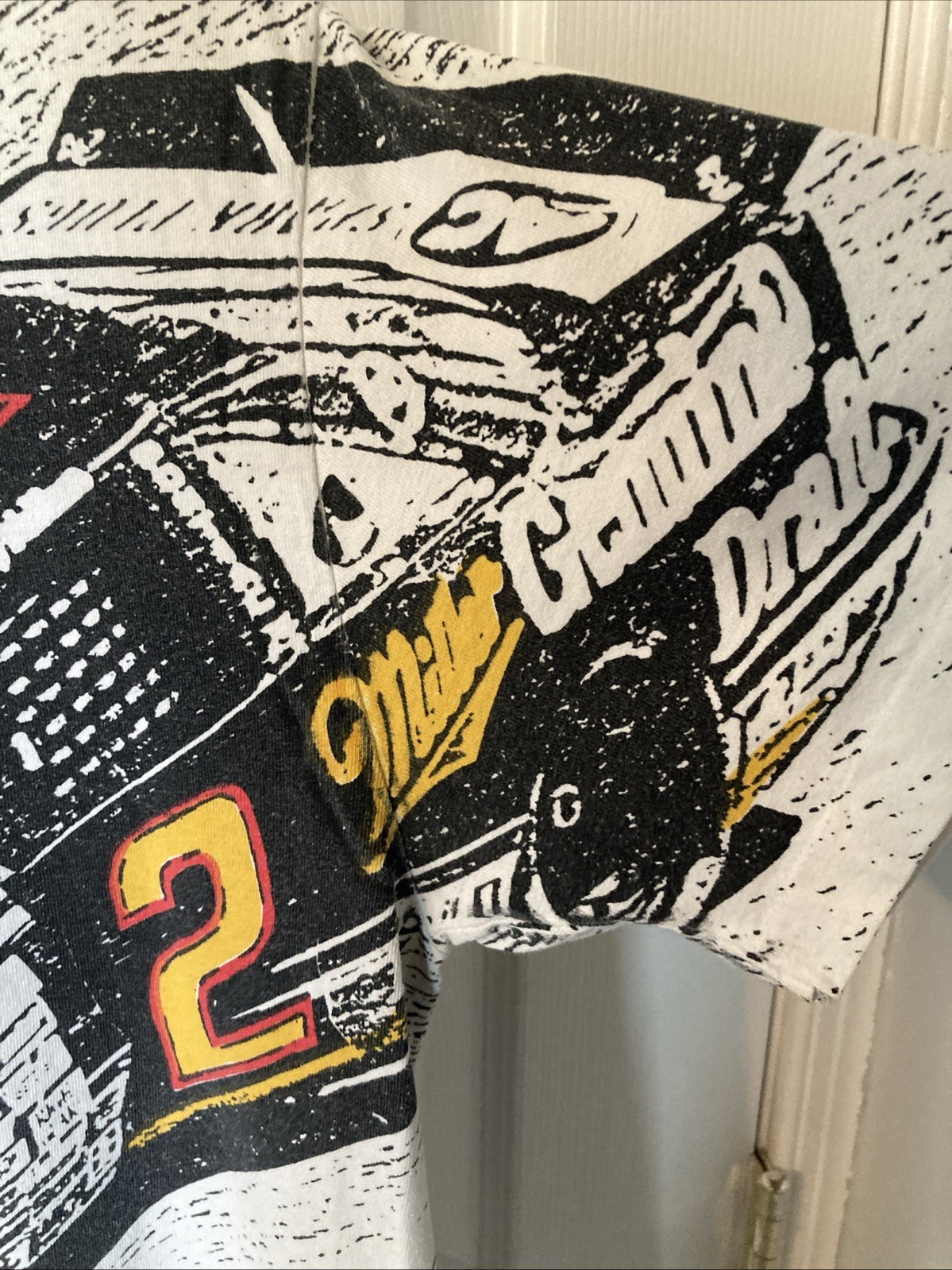 • Vintage 90s Rusty Wallace NASCAR T-Shirt Miller Draft 2 Single Stitch Stains