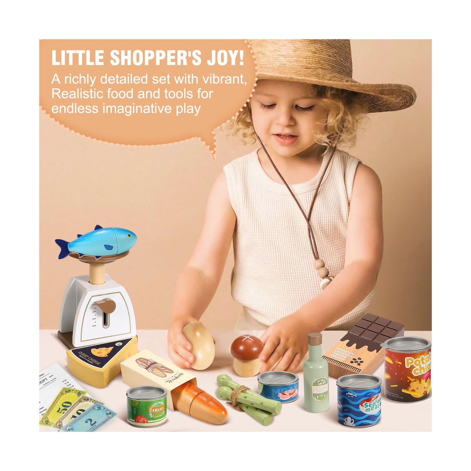 Wooden Play Food Set for Kids Toddlers, Grocery Store Pretend Play ... Fast Ship