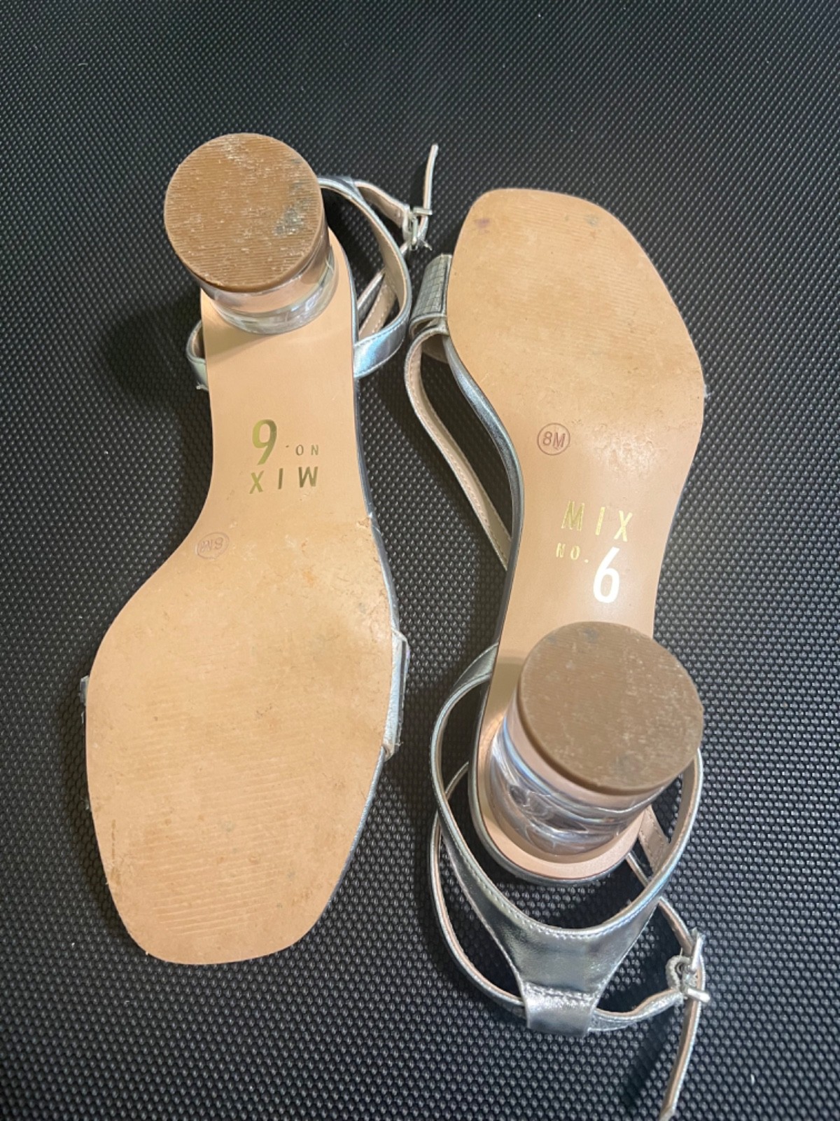 как выглядит Mix No. 6 Holographic Strappy Sandals with Clear Heel Size 8M фото
