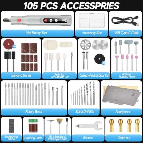 Mini Cordless Rotary Tool Kit, 5-Speed 4.2V USB Rechargeable Engraving Grey
