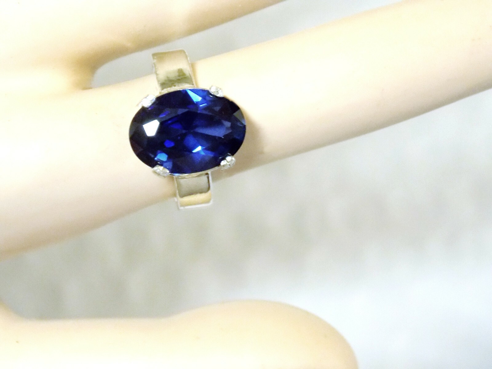 как выглядит 8ct Blue Lab Sapphire Size 6.5 Ring 925 Sterling Silver 4.5mm Wide Band USA Made фото