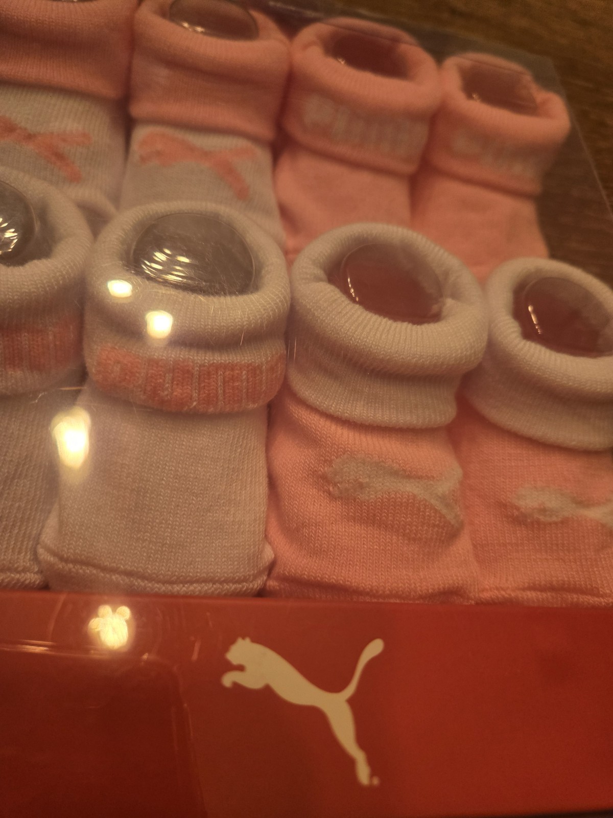 как выглядит Puma Infant 4 Pairs Pack Pink White Knit Logo Graphic Cuffed Socks Booties 0-12M фото