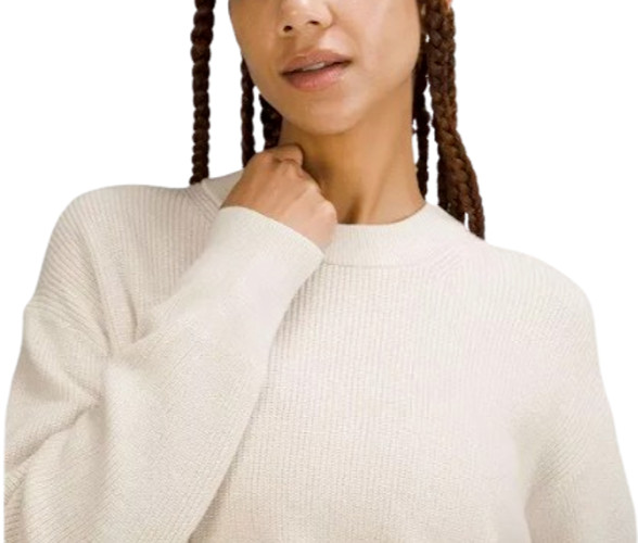 как выглядит Lululemon Sweater Merino Wool Blend Ribbed Crewneck White Opal LW3GKAS Size 4 фото