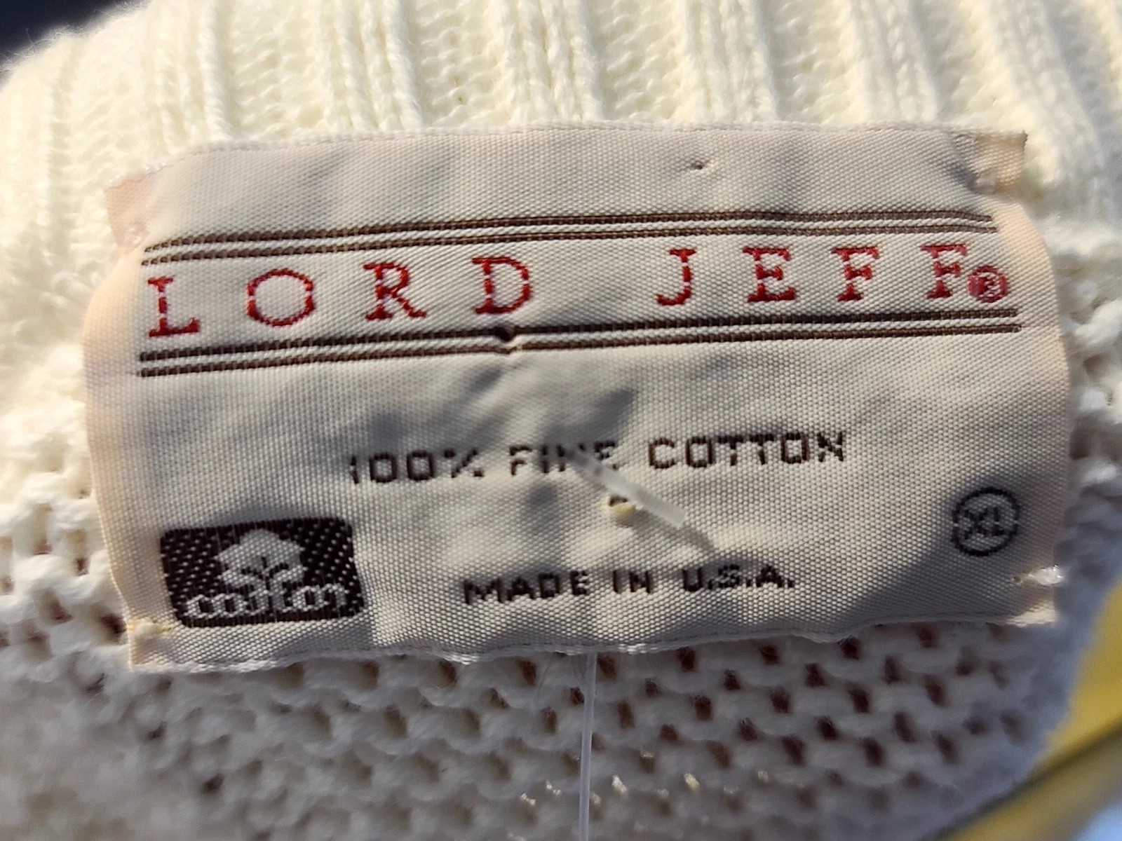 как выглядит Vintage LORD JEFF Basket Weave Knit Fisherman Sweater 100 Fine Cotton USA XL фото