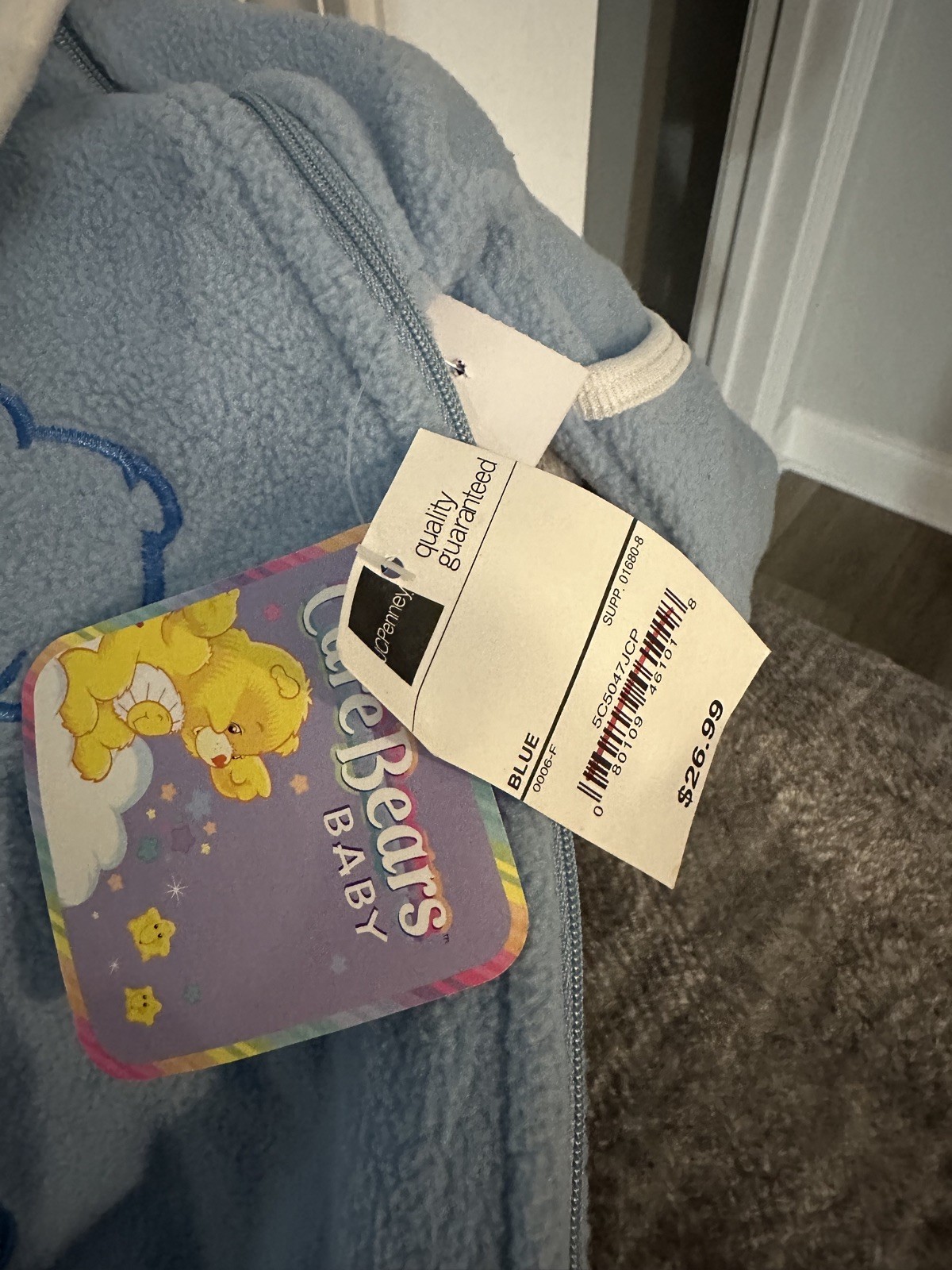 Vintage Y2K 2005 Care Bears Champ Fleece One Piece Rare Full Set Baby 0-3 Months
