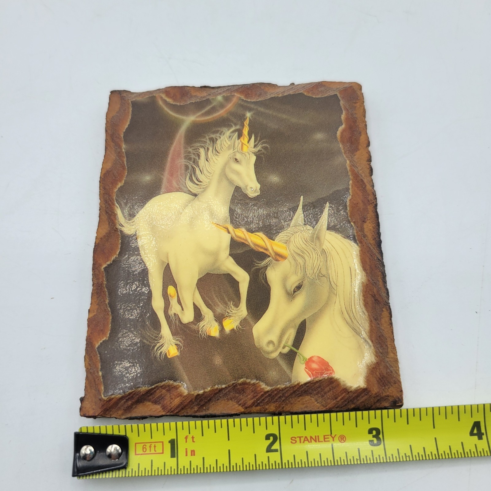 как выглядит Vintage Mini 4" x 3 1/2" Lacquered Ferraro Unicorns Moon And Rose Wall Art фото