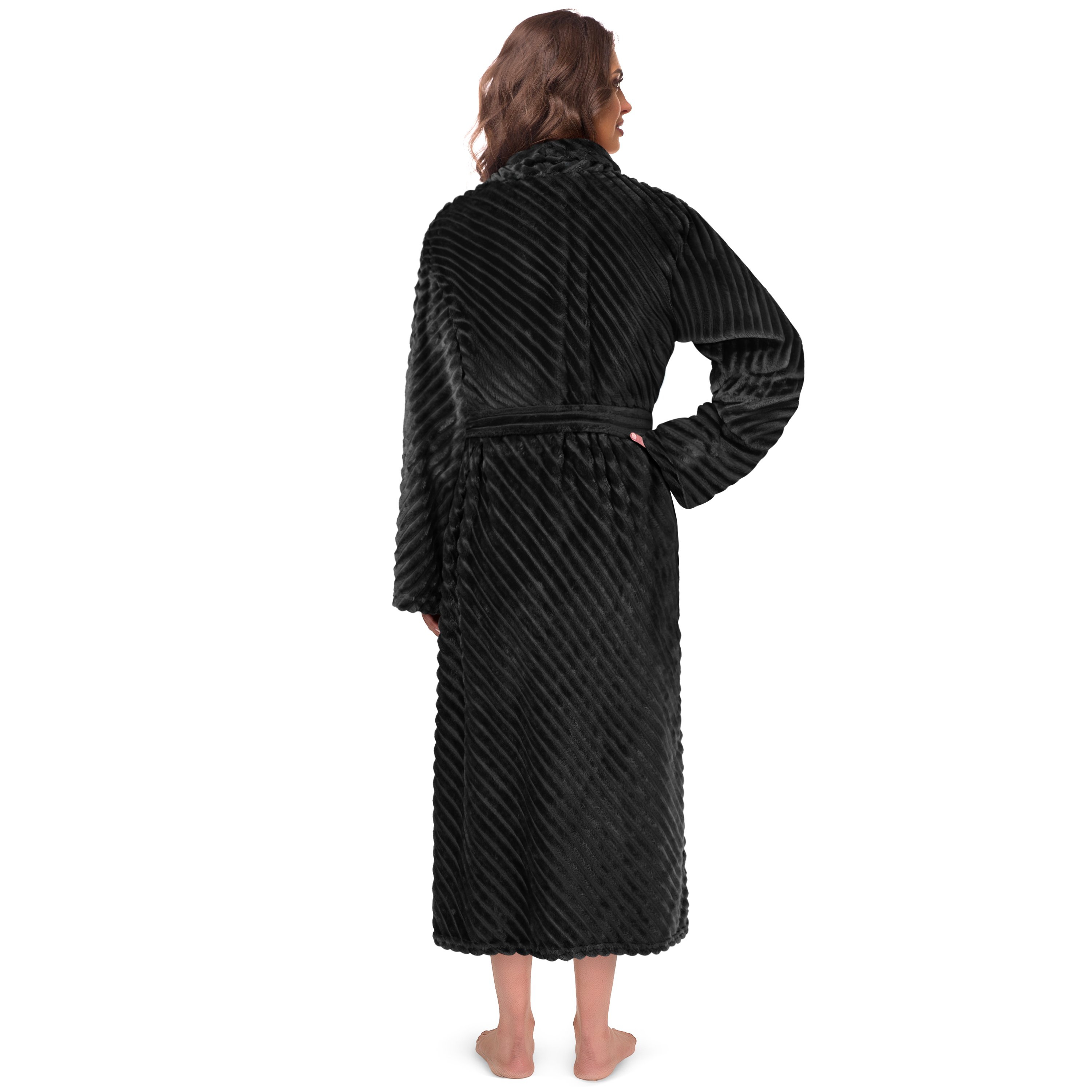 PAVILIA Premium Womens Plush Soft Robe Stripe Warm Fleece Spa Bathrobe Ladies