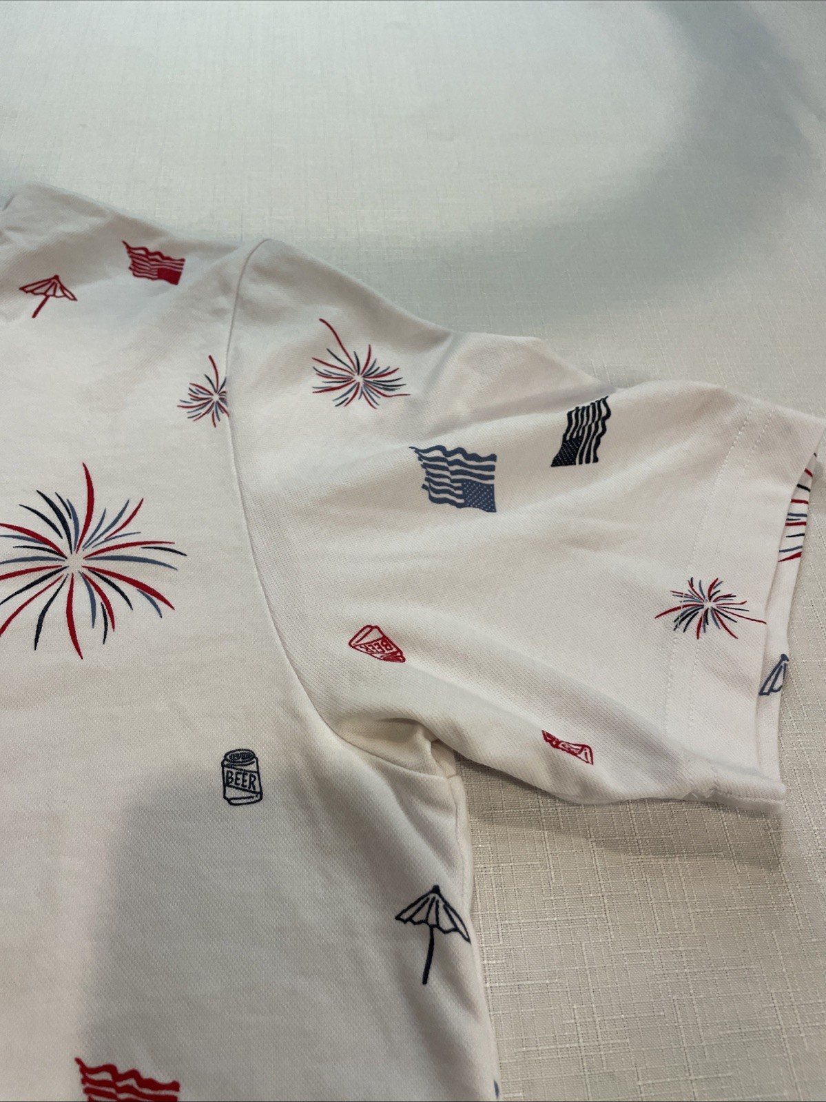 Travis Mathew S/S Polo Golf Shirt USA Theme w/Logo Beer/ Flag White Men's Medium