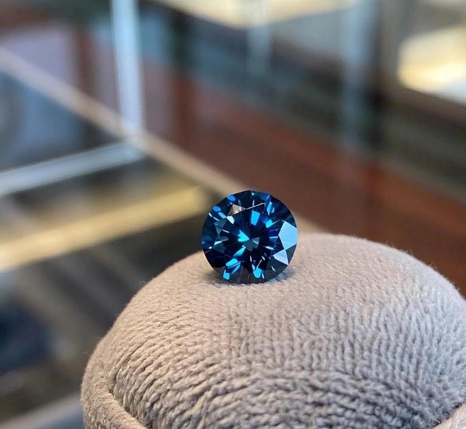как выглядит 3 Ct Round Cut Natural Blue Color Lab Grown Diamond VVS1 Clarity фото