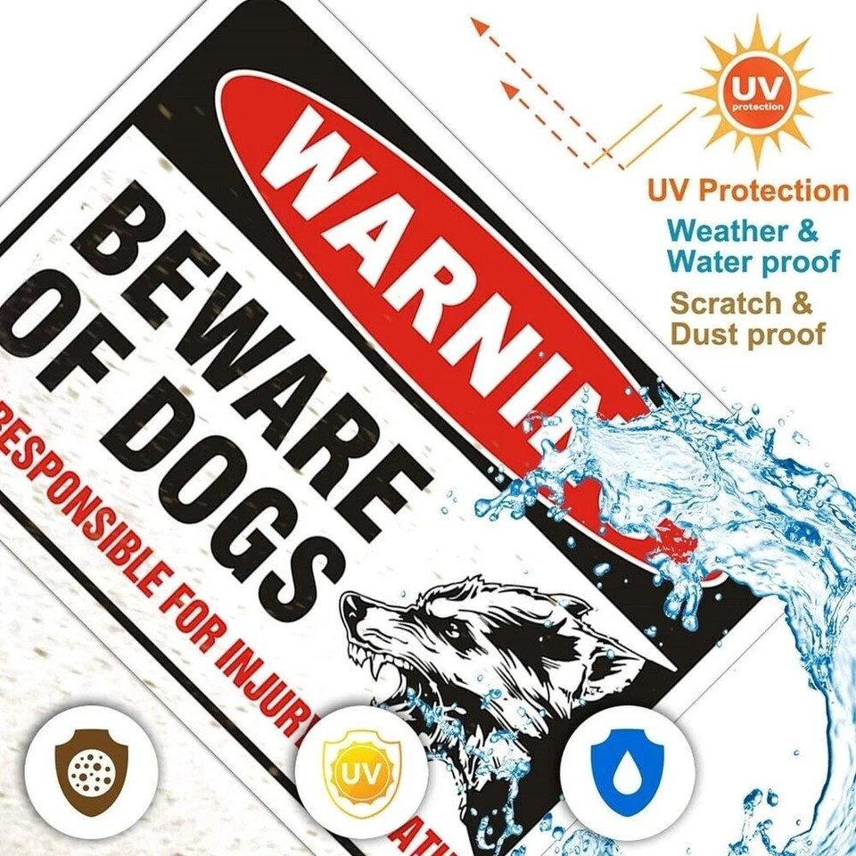 2 Pack Beware of Dog Sign Metal Aluminum Dog Warning Signs Reflective UV Prot